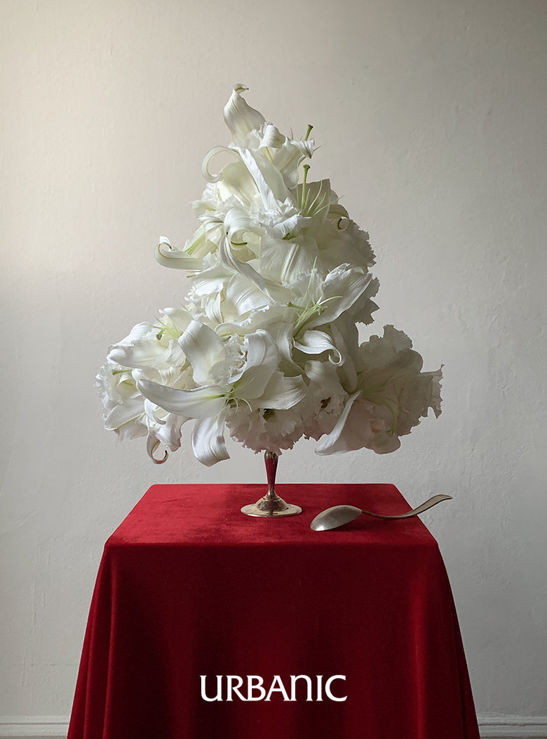 M: For this collaboration with Urbanic 30, I focused on classic and timeless flowers. I wanted to express different sides of myself through two different arrangements. Red roses show my love for colors and the liveliness they bring, and white lilies represent the opposite—minimal and restrained.