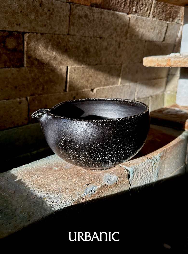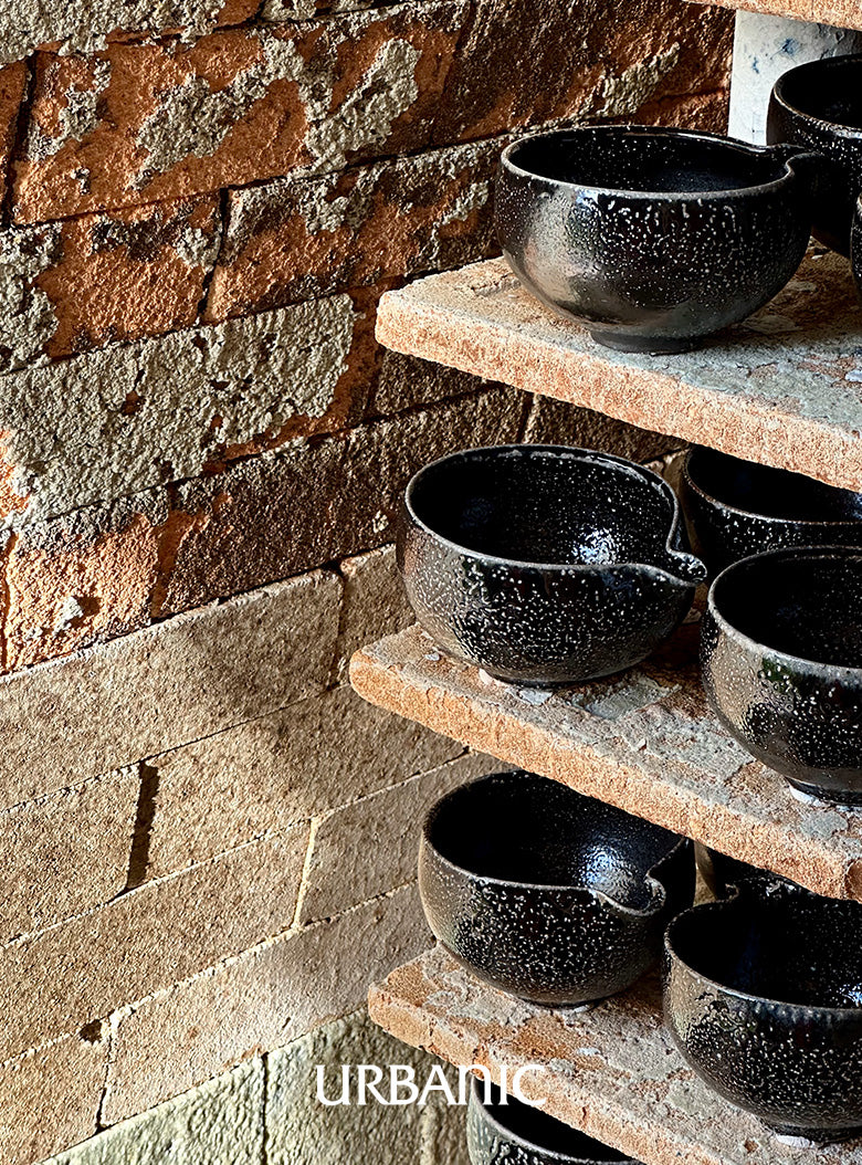 D: The Black Stoneware Collection is a contemporary ceramic line blending traditional materials, unique techniques, and modern design. Each piece is handmade for both everyday use and special occasions. The collection includes drinkware with a comfortable grip, stackable bowls designed for easy pouring and serving, and elegant wide-rimmed plates.