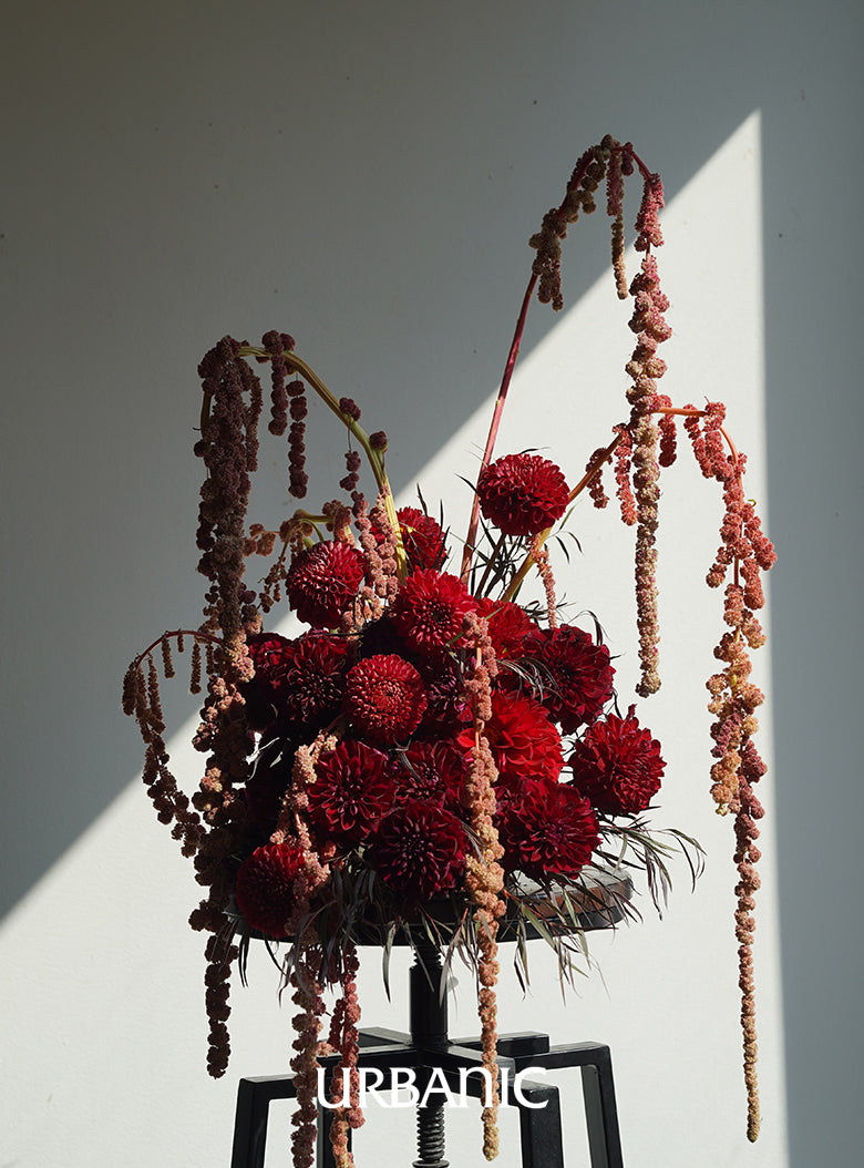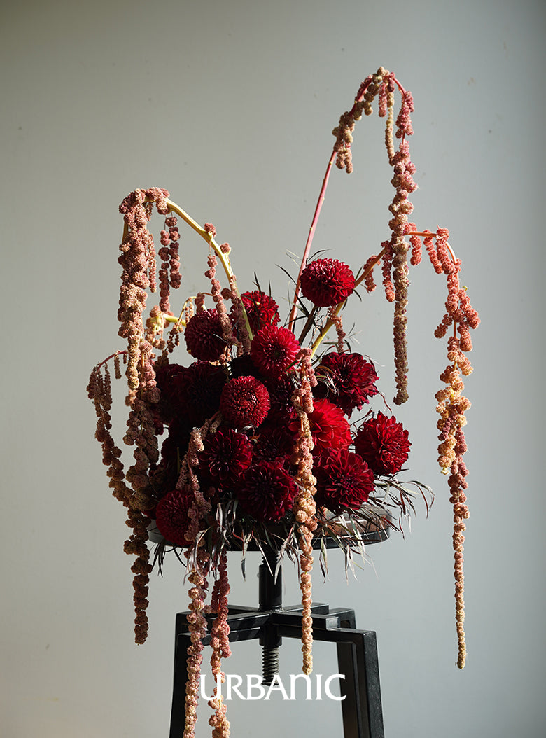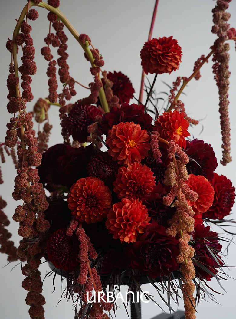 EriN Design INTL, a flower design studio based in New York and led by Eriko Nagata, actively showcases works that bring out the unique beauty of each flower, ranging from large-scale installations for fashion shows, gala dinners, and parties to delicate floral arrangements. With the motto 'A journey into the floral design,' EriN Design INTL designs the beauty of nature and modernity. For Urbanic, they have completed a piece that combines the rich colors and velvety textures of dahlias and cockscomb.
