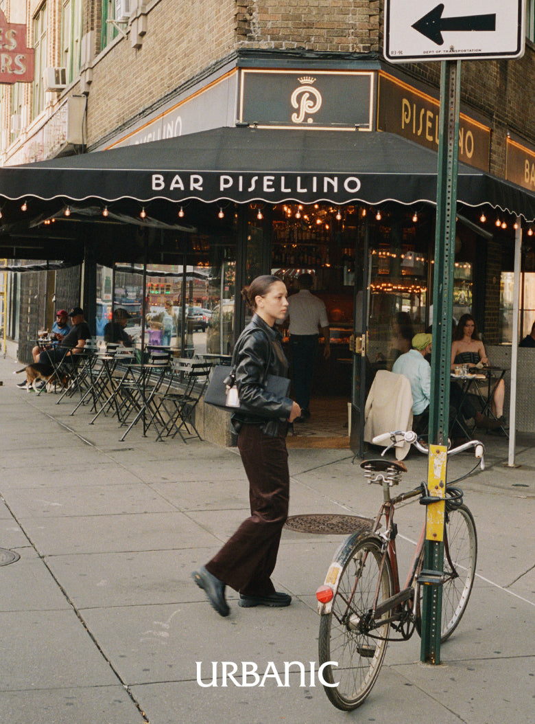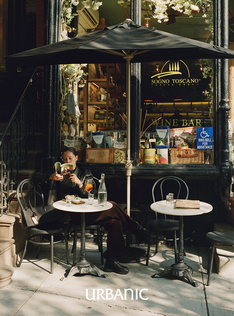 @reltubatokad, Dakota Butler, a New York-based influencer and visual consultant, introduces her favorite cafés and bars in the West Village as the model for Urbanic’s fall campaign.