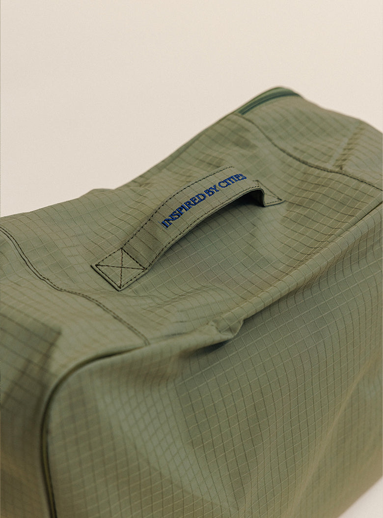 A travel bag crafted from lightweight yet durable ripstop fabric.