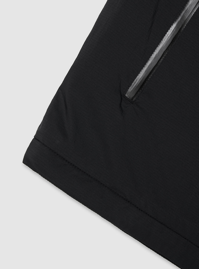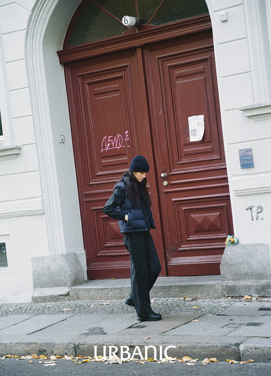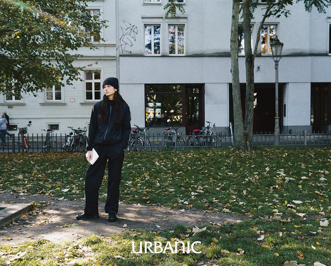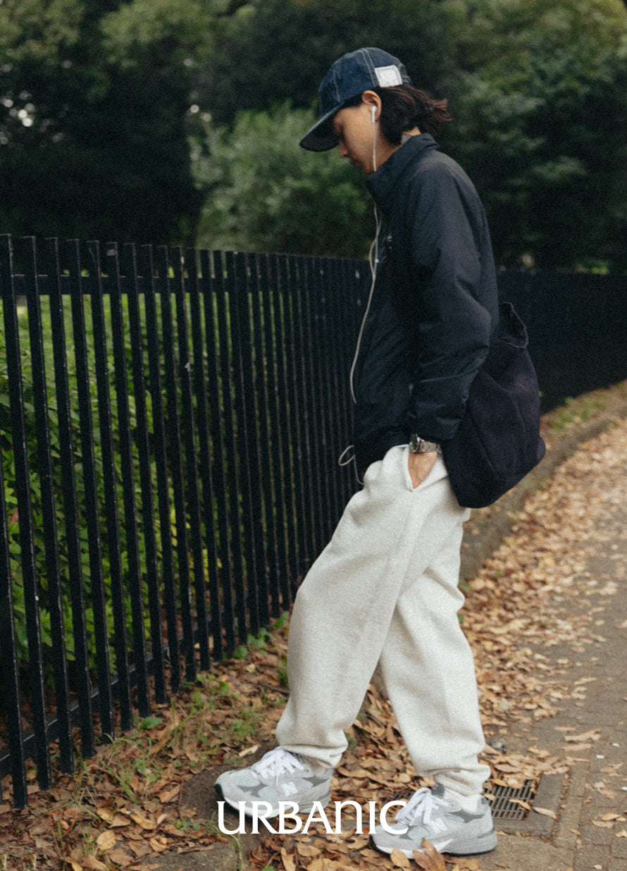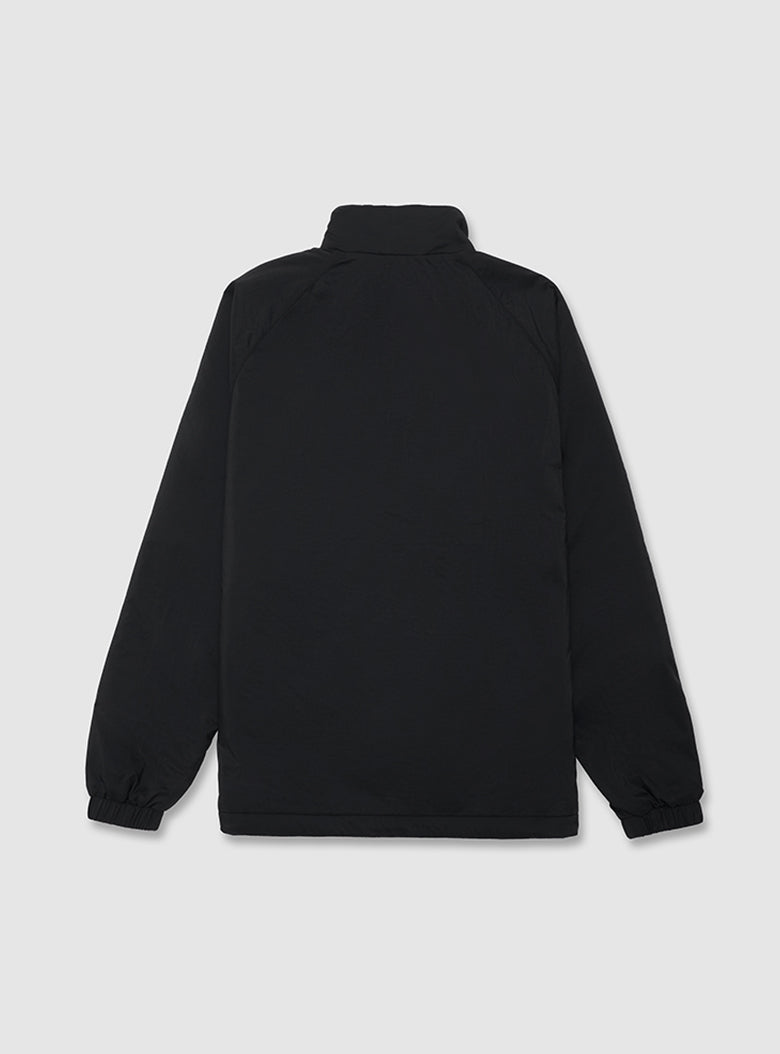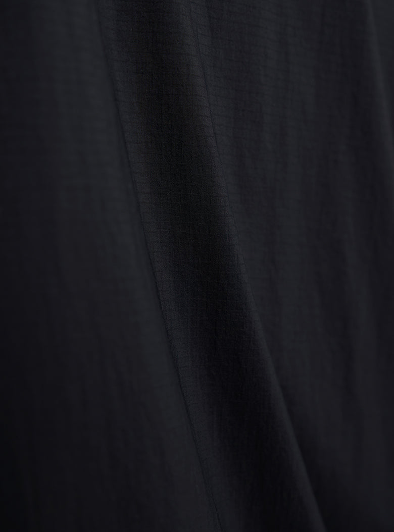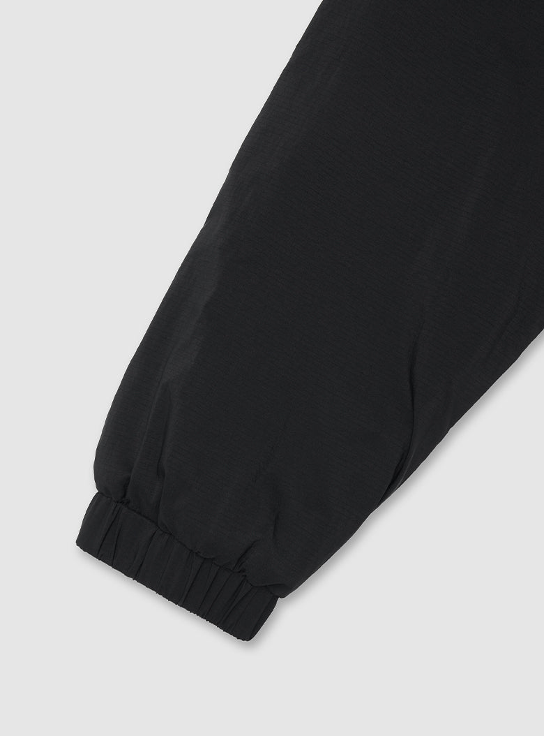 The "Aoyama LT Jacket" is a sophisticated reinterpretation of functional sportswear, styled for everyday wear. It is made from ripstop nylon fabric with a subtle grid pattern, while the neckline and pocket linings are wrapped in soft, cozy polyester fleece.