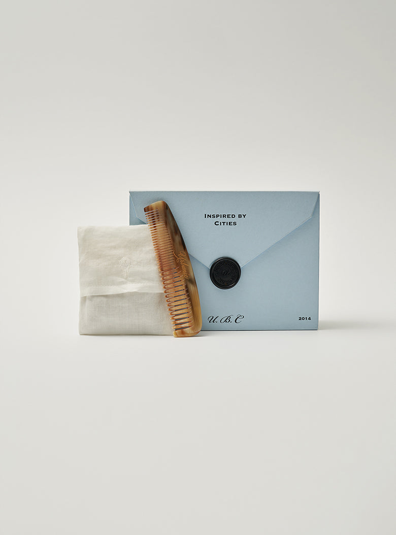 The "Baignoire de Urbanic Comb & Sachet" offers a touch of fragrant and refined joy for your everyday life. This set includes a delicately crafted hair comb and a subtly scented sachet, beautifully presented in a light blue box, making it a perfect gift to share your heartfelt sentiments.