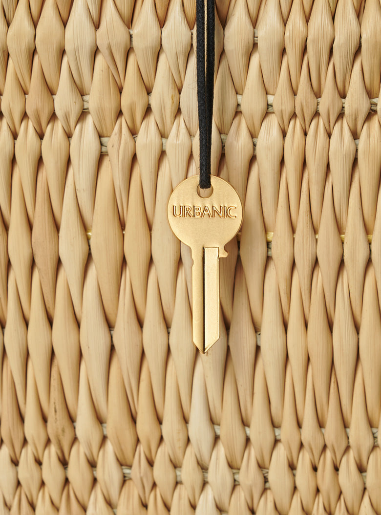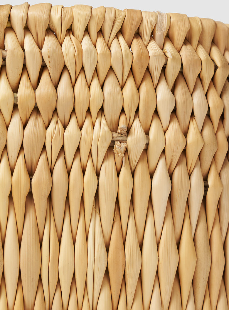 This is a basket bag meticulously woven by artisans from palm tree materials. Its tote shape makes it versatile for use in all seasons. Due to the natural material and handmade nature, there may be variations in size, color, and shape between individual pieces.