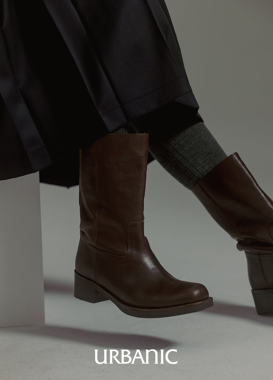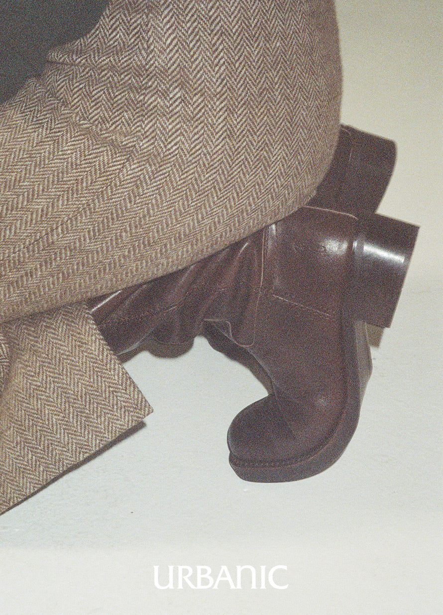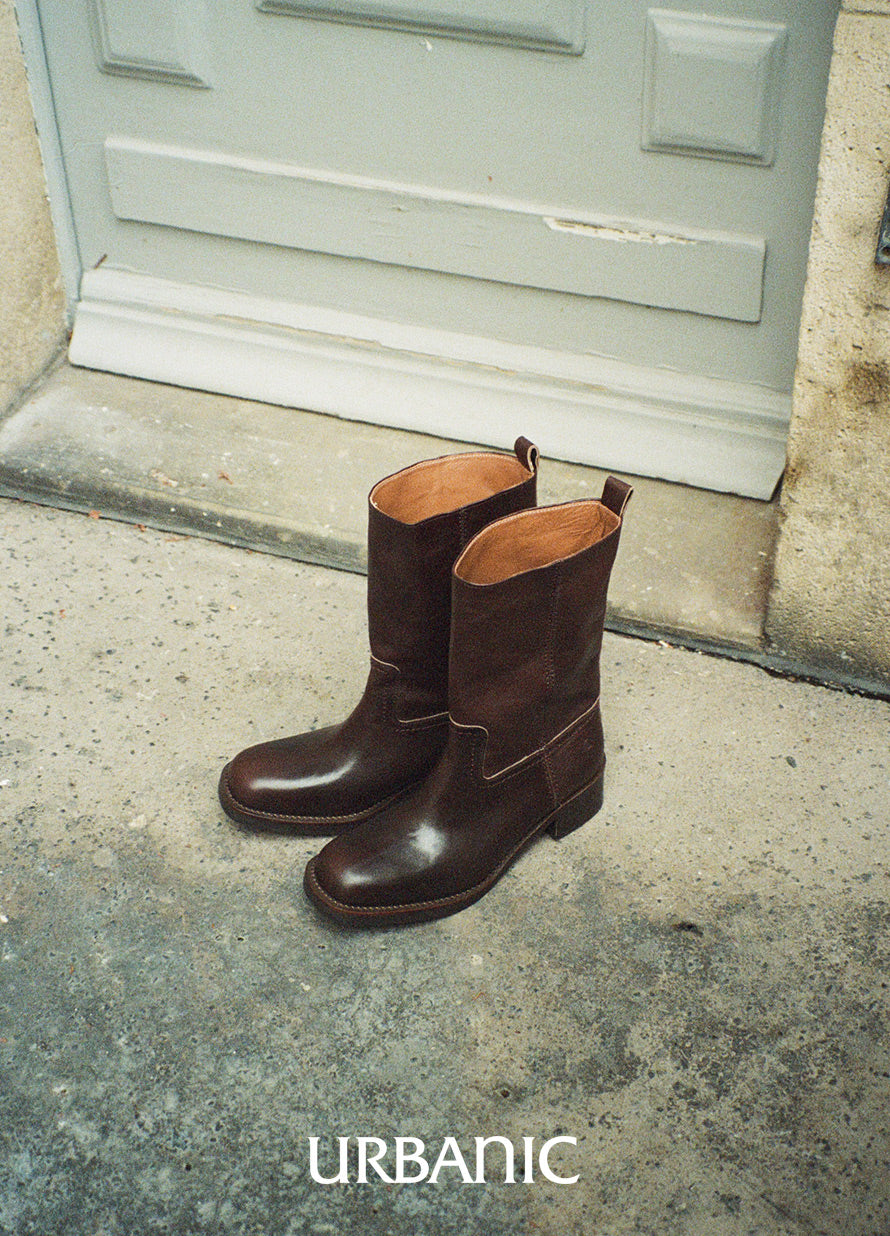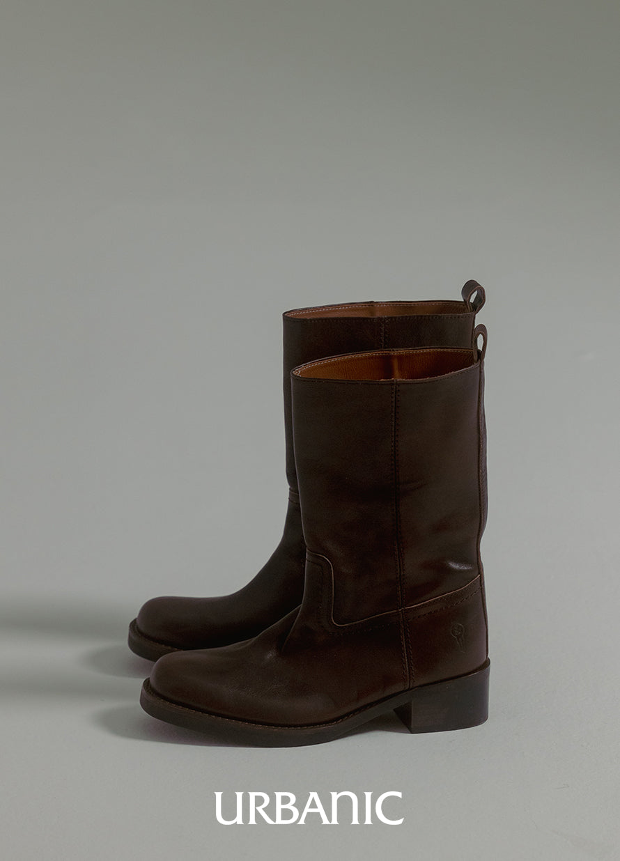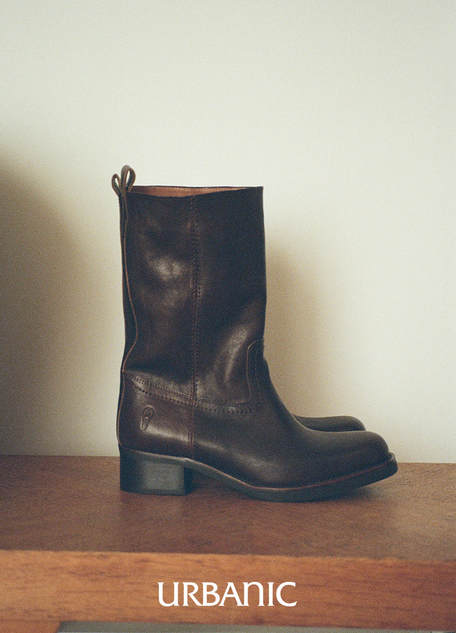 These are biker boots with a standout two-tone color scheme and a square shape. Both the outer and inner linings are made of cowhide leather for durability, and they feature a 4 cm heel.