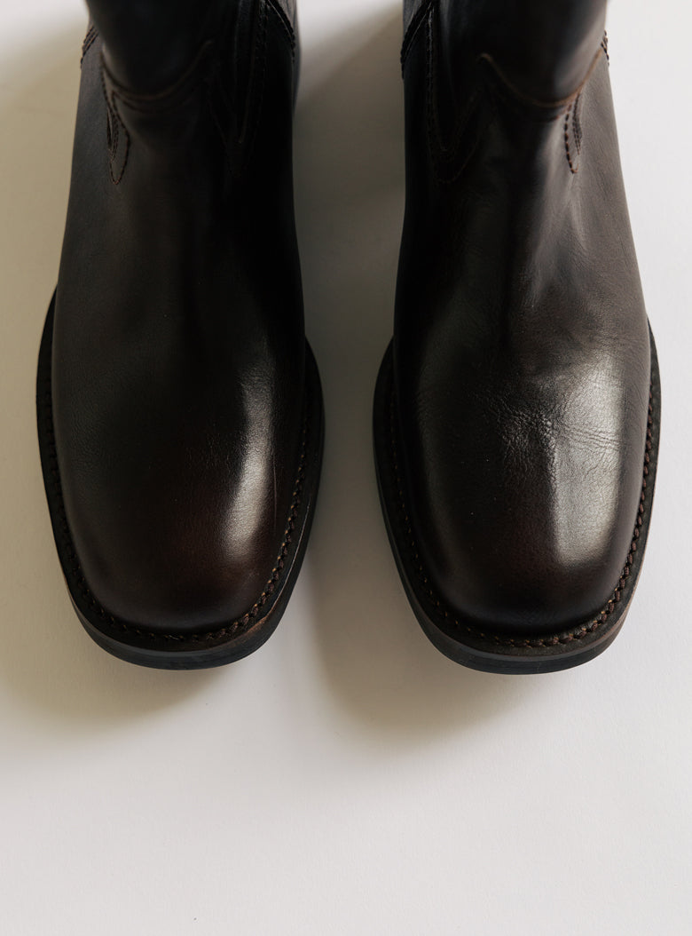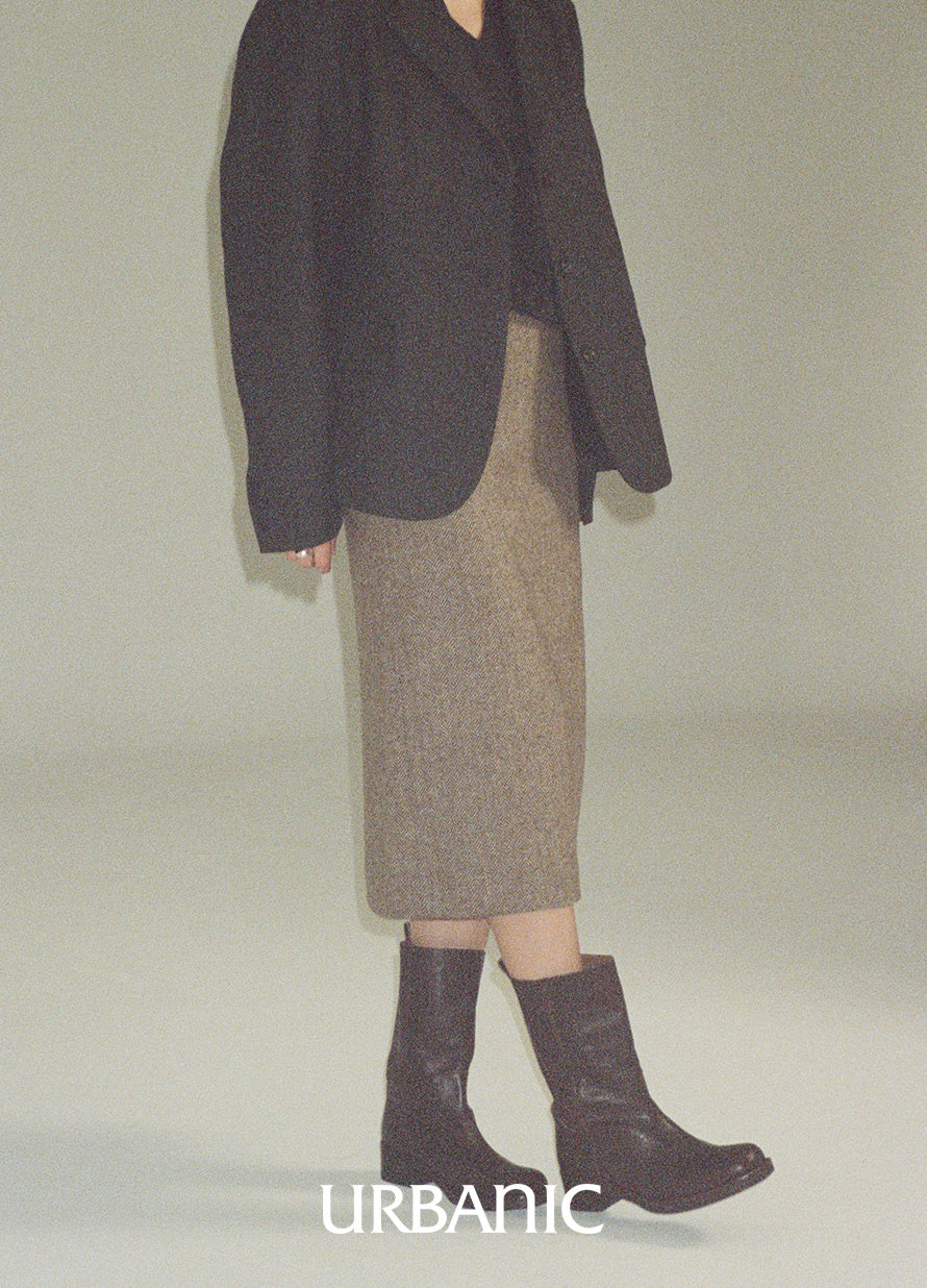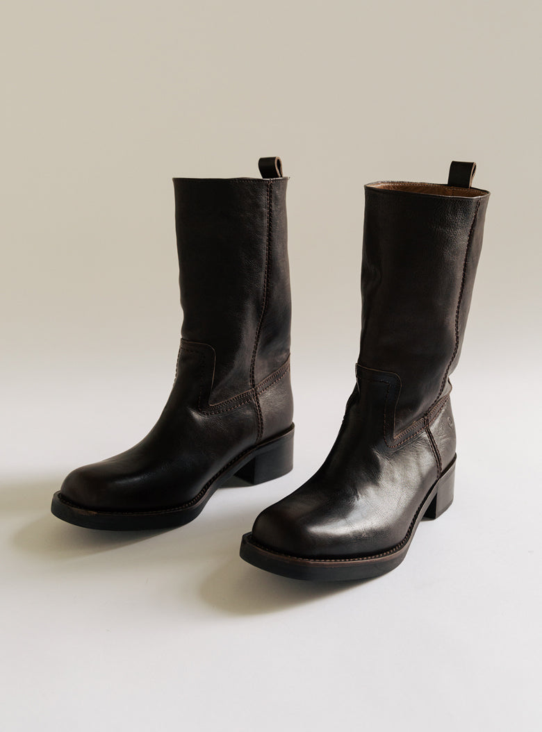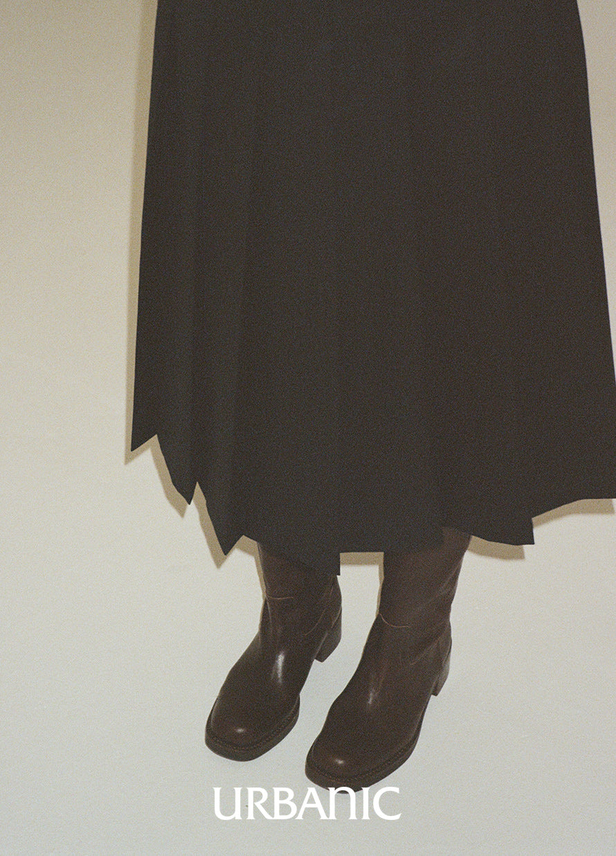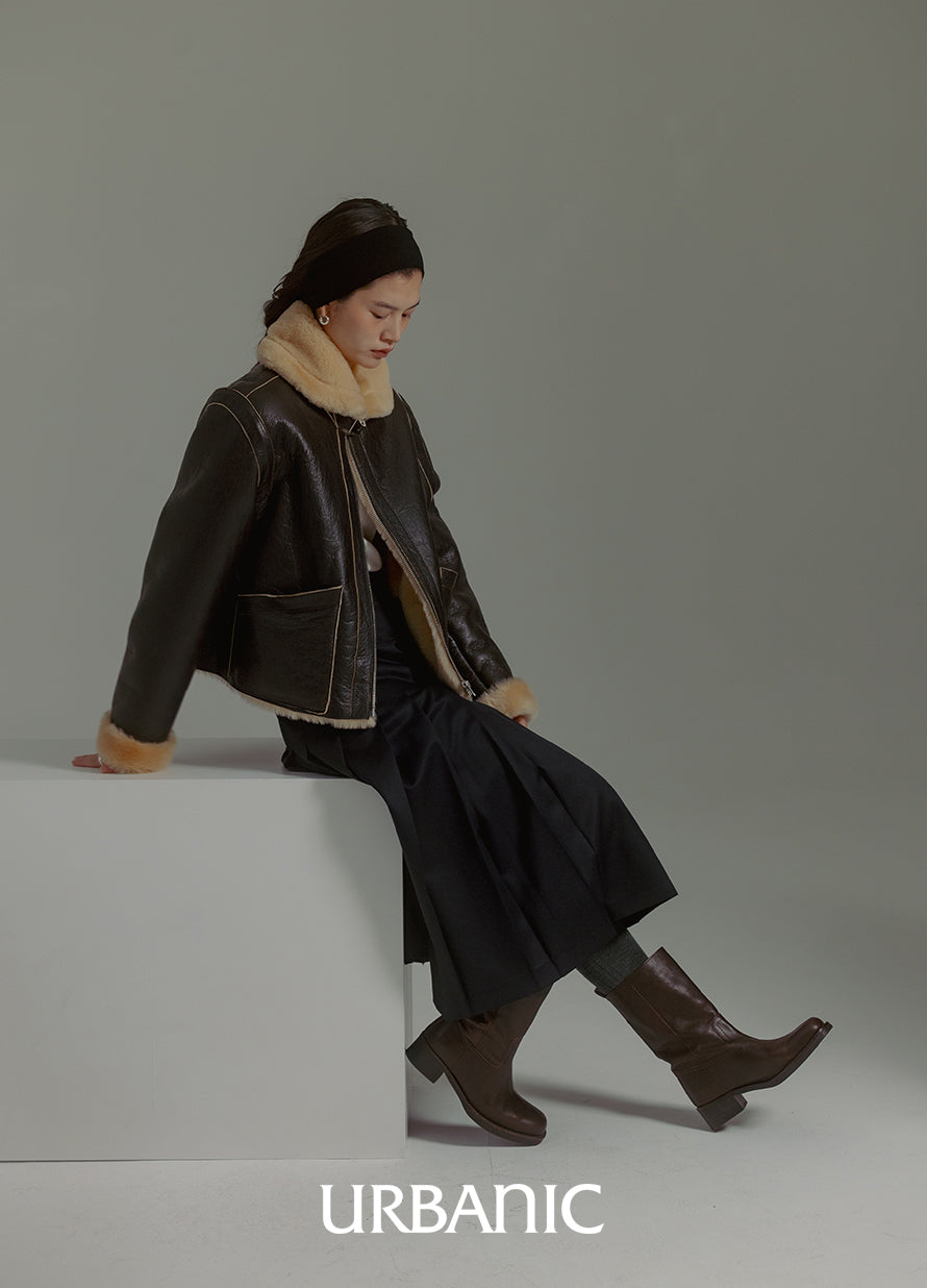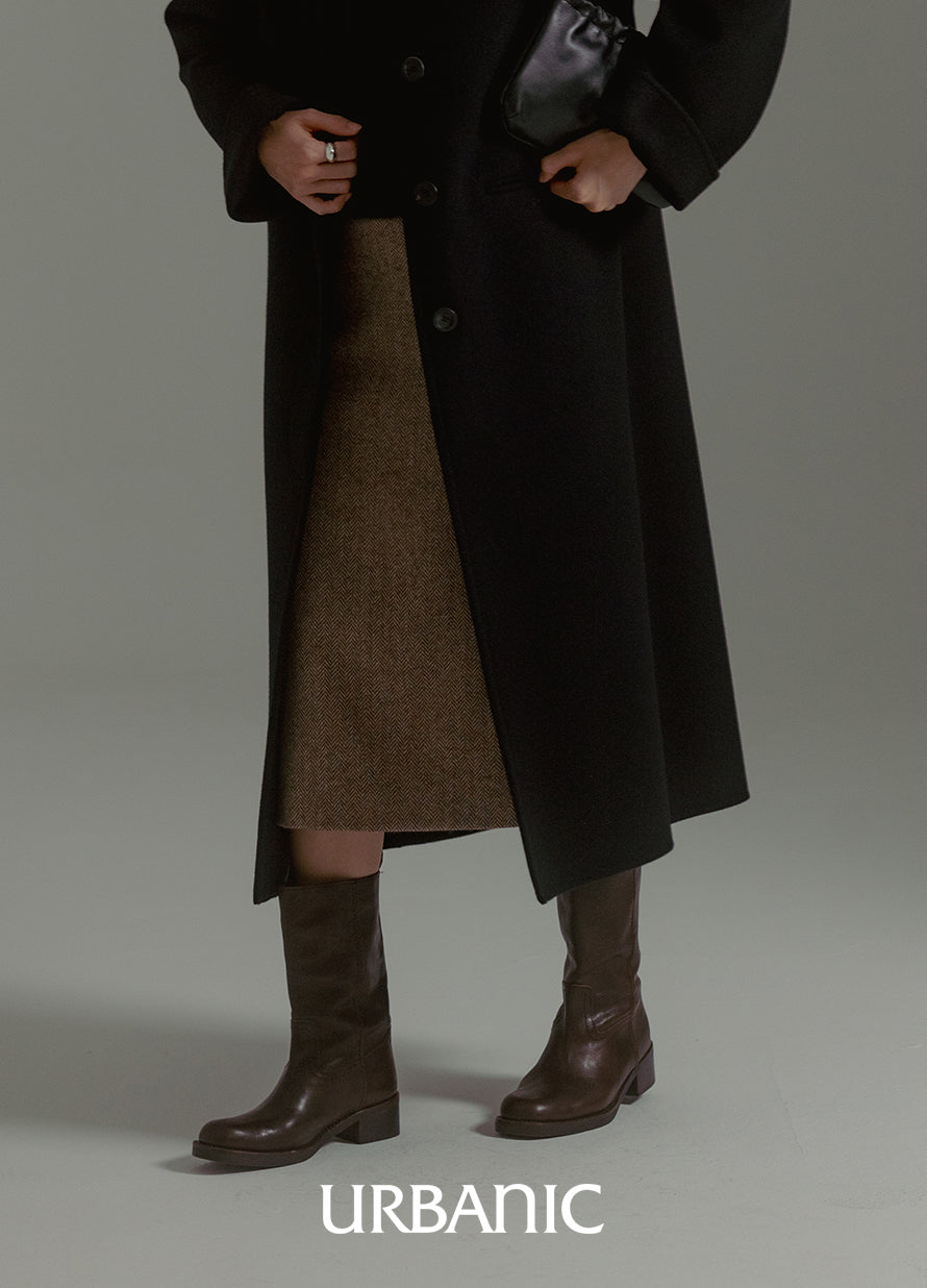 These are biker boots with a standout two-tone color scheme and a square shape. Both the outer and inner linings are made of cowhide leather for durability, and they feature a 4 cm heel.