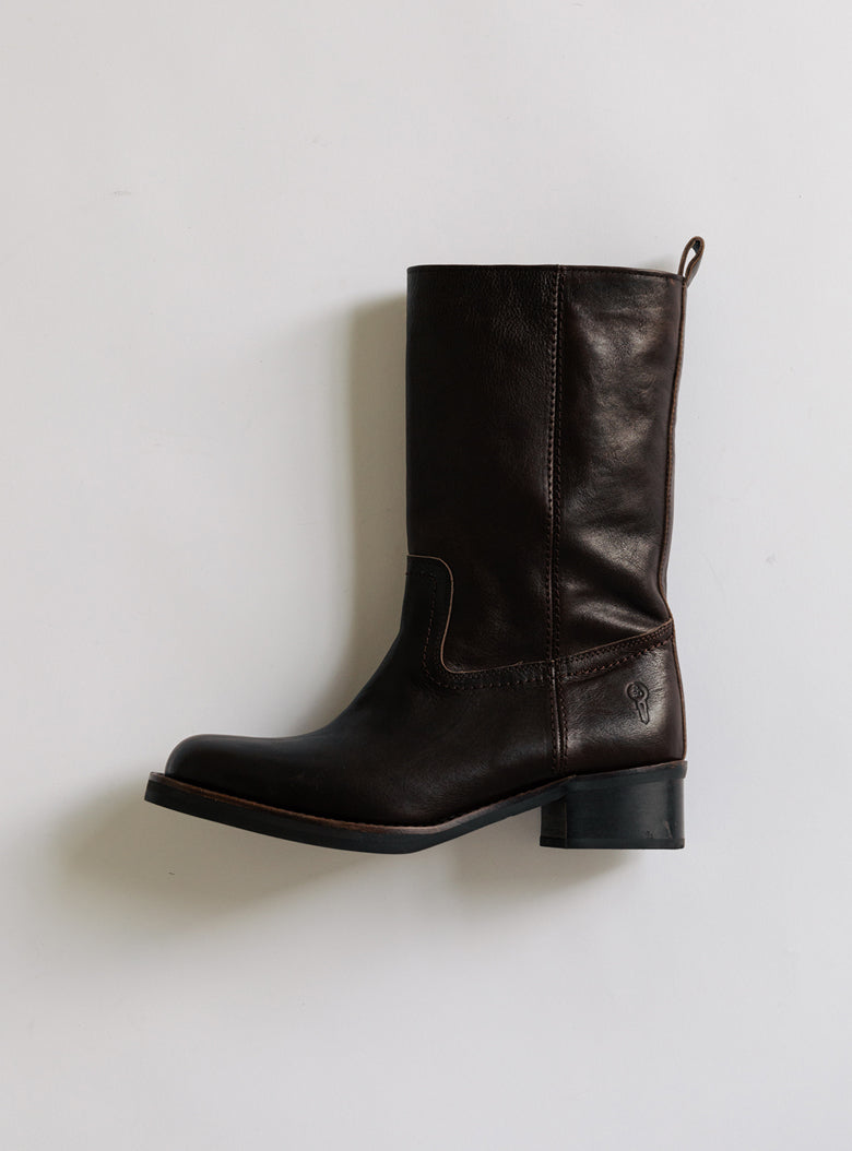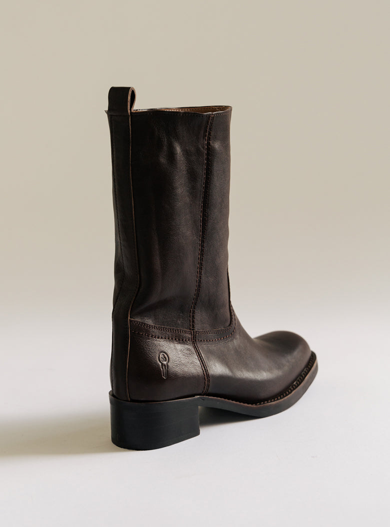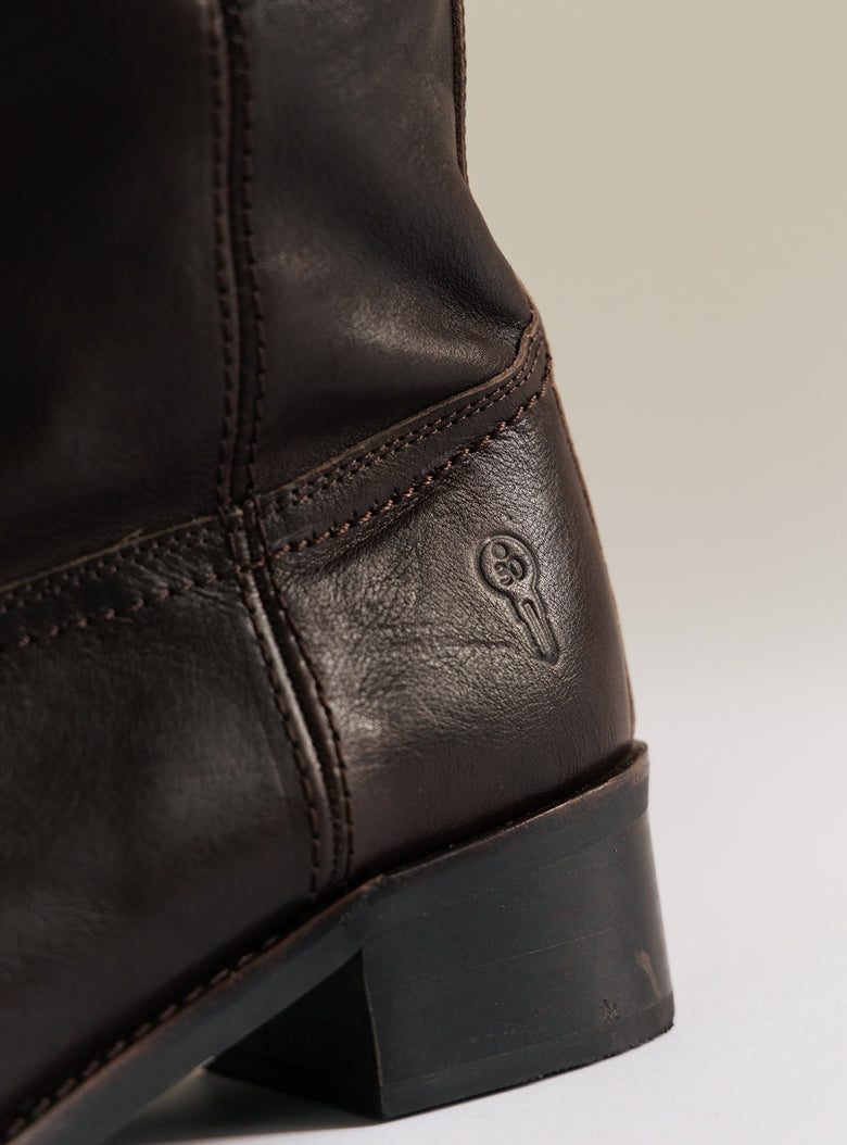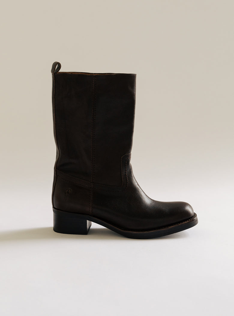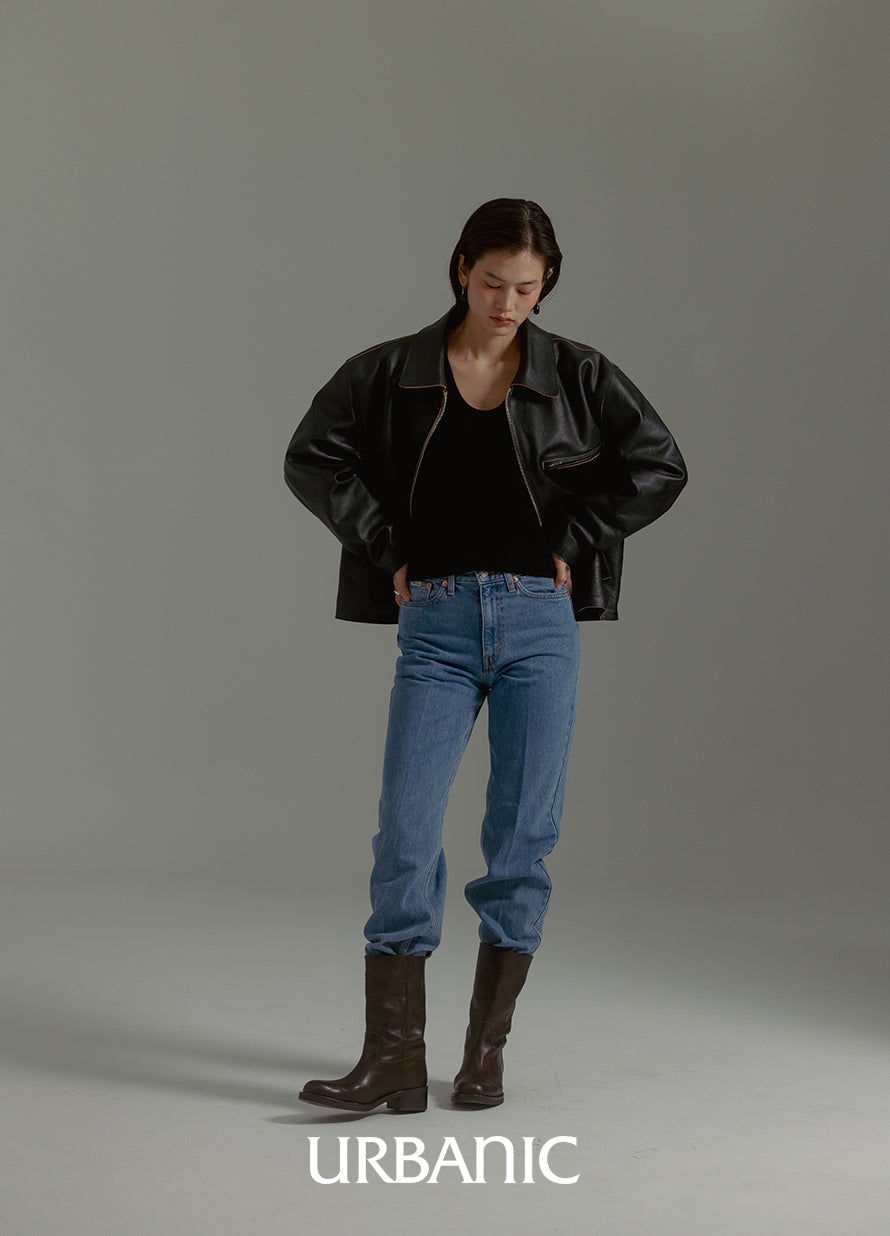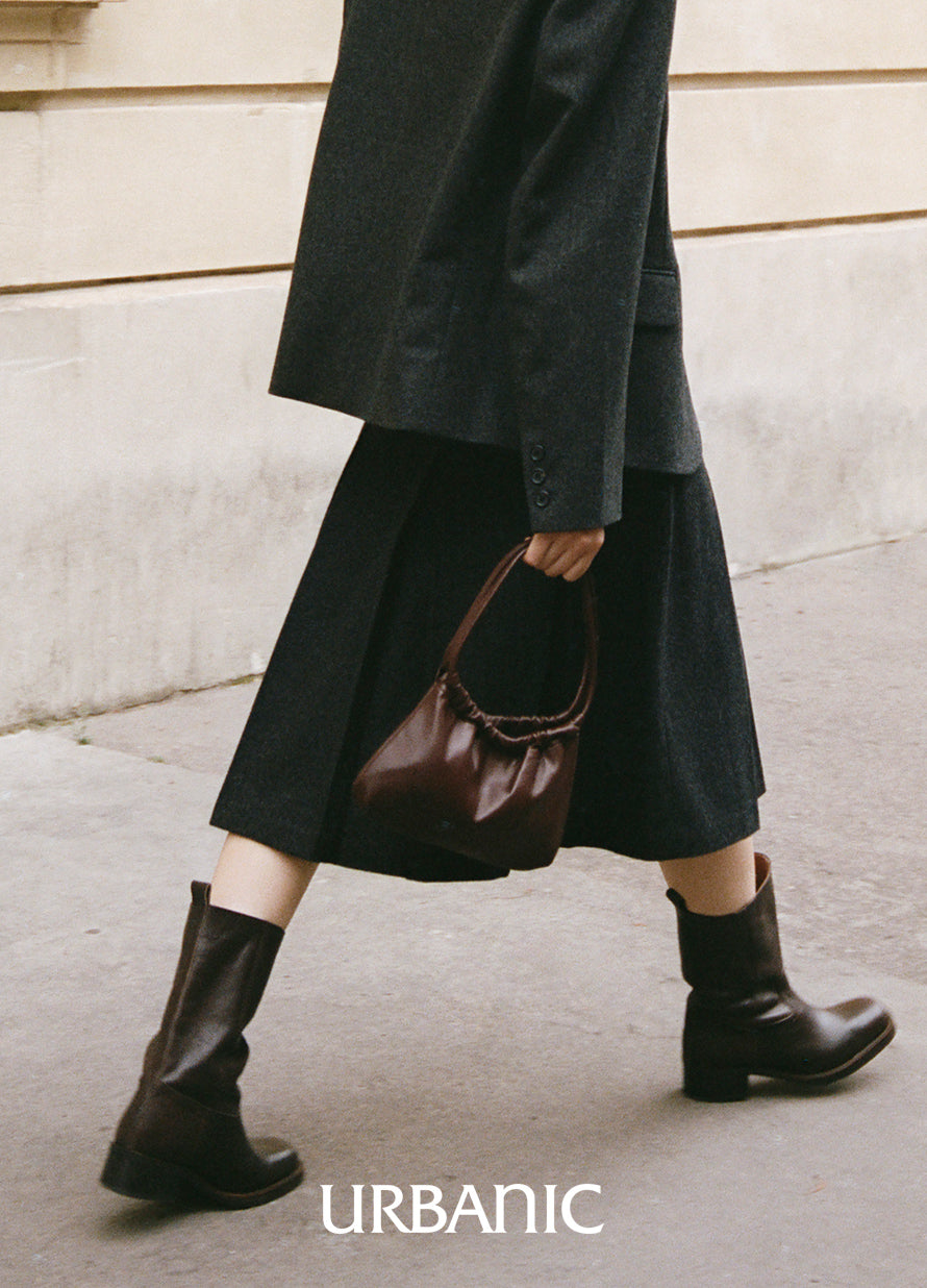 These are biker boots with a standout two-tone color scheme and a square shape. Both the outer and inner linings are made of cowhide leather for durability, and they feature a 4 cm heel.