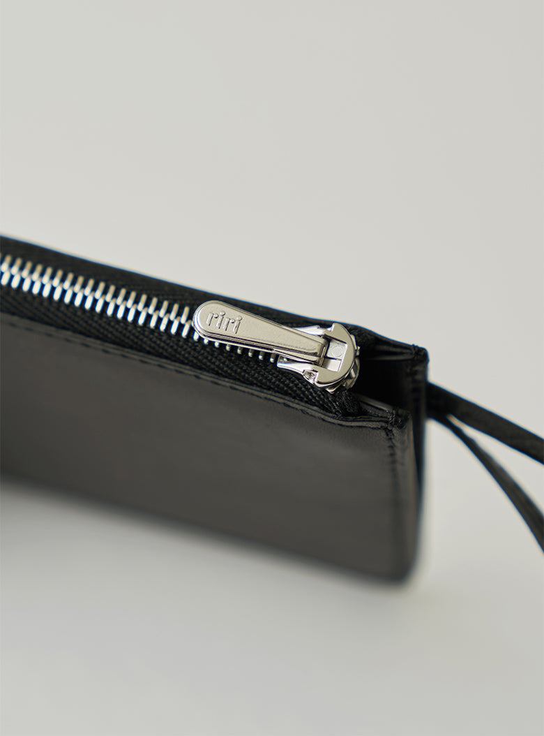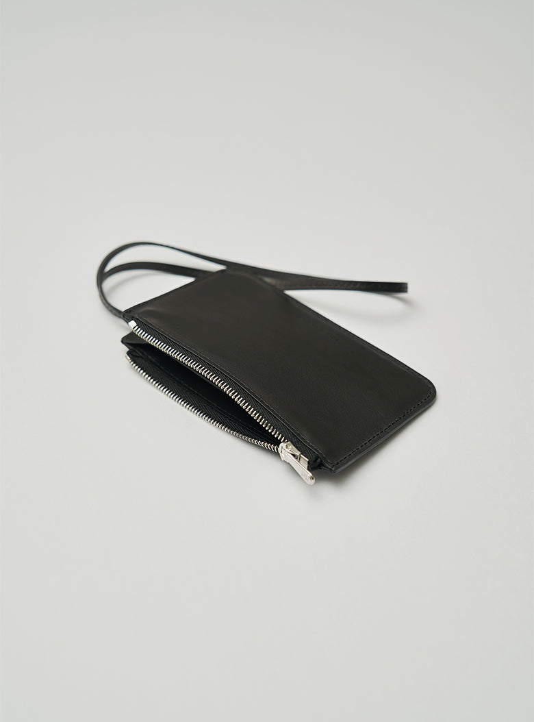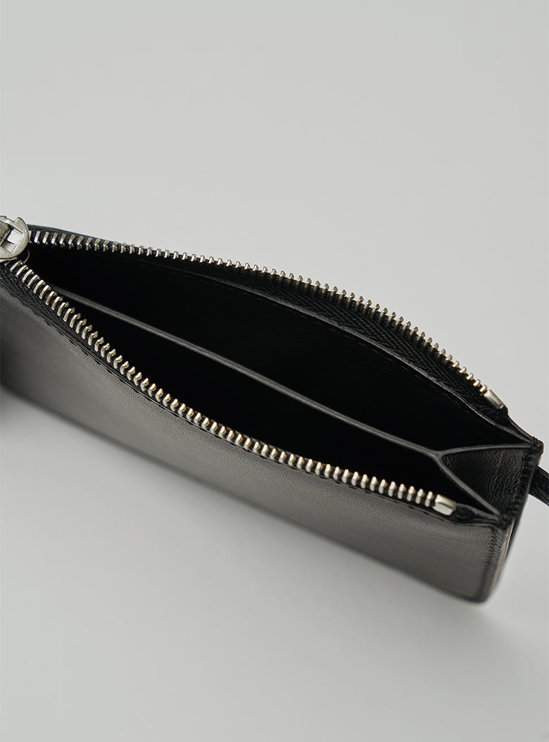 This is a compact wallet perfect for days when carrying a bag feels cumbersome. Crafted from fine and smooth Italian calf leather, this mini wallet boasts a luxurious texture that feels exquisite to the touch. It features a long leather strap, allowing you to hold it comfortably in your hand or attach it to your bag.