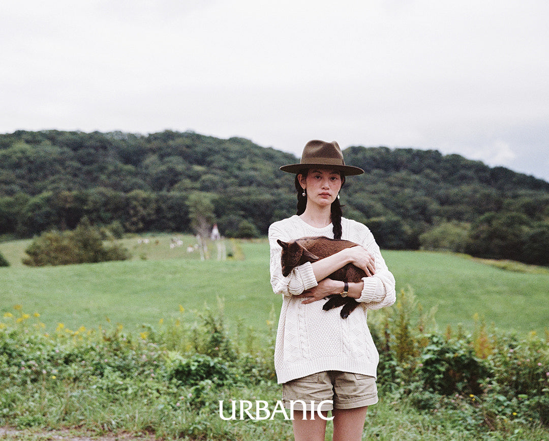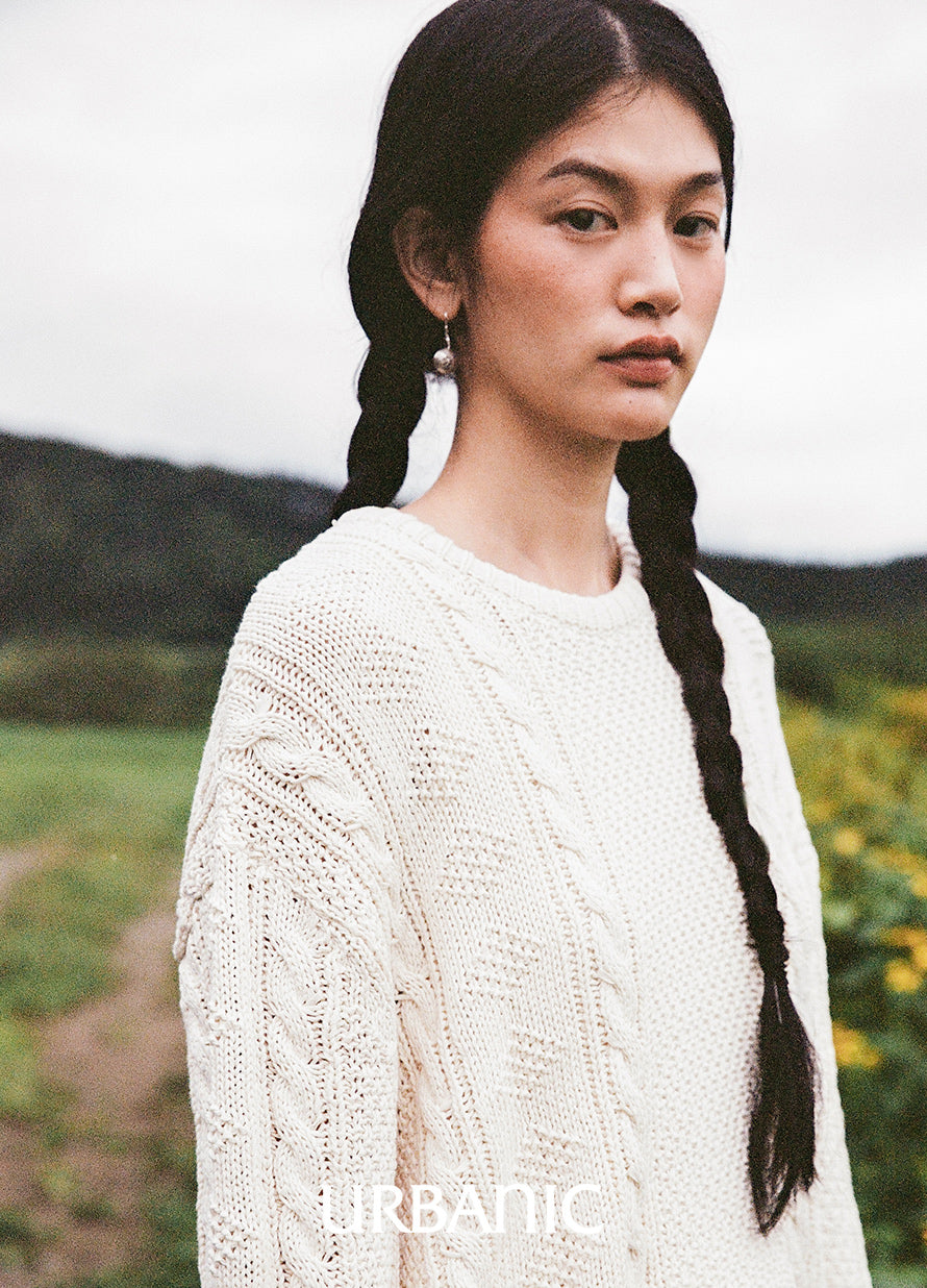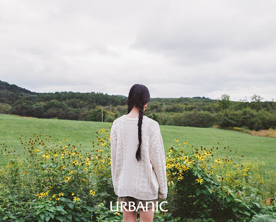 This is the Cotton Aran Knit, a richly textured Aran sweater reinterpreted with materials and design that suit the seasonal mood of autumn. The classic, attractive patterns of the Aran sweater are knitted with cotton tape yarn to minimize shedding, while offering a refreshing texture that stands out.