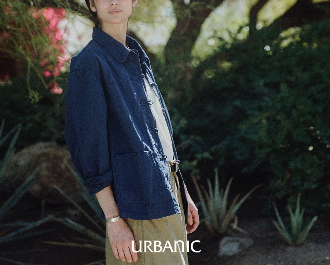 A reinterpretation of French workwear, this Cotton Chinese Jacket blends utilitarian design with traditional handcraft details. Inspired by the vintage “French China Jacket” — a practical work jacket from France updated with knotted frog buttons — it brings a refined yet casual mood through a timeless silhouette and subtly nostalgic charm.