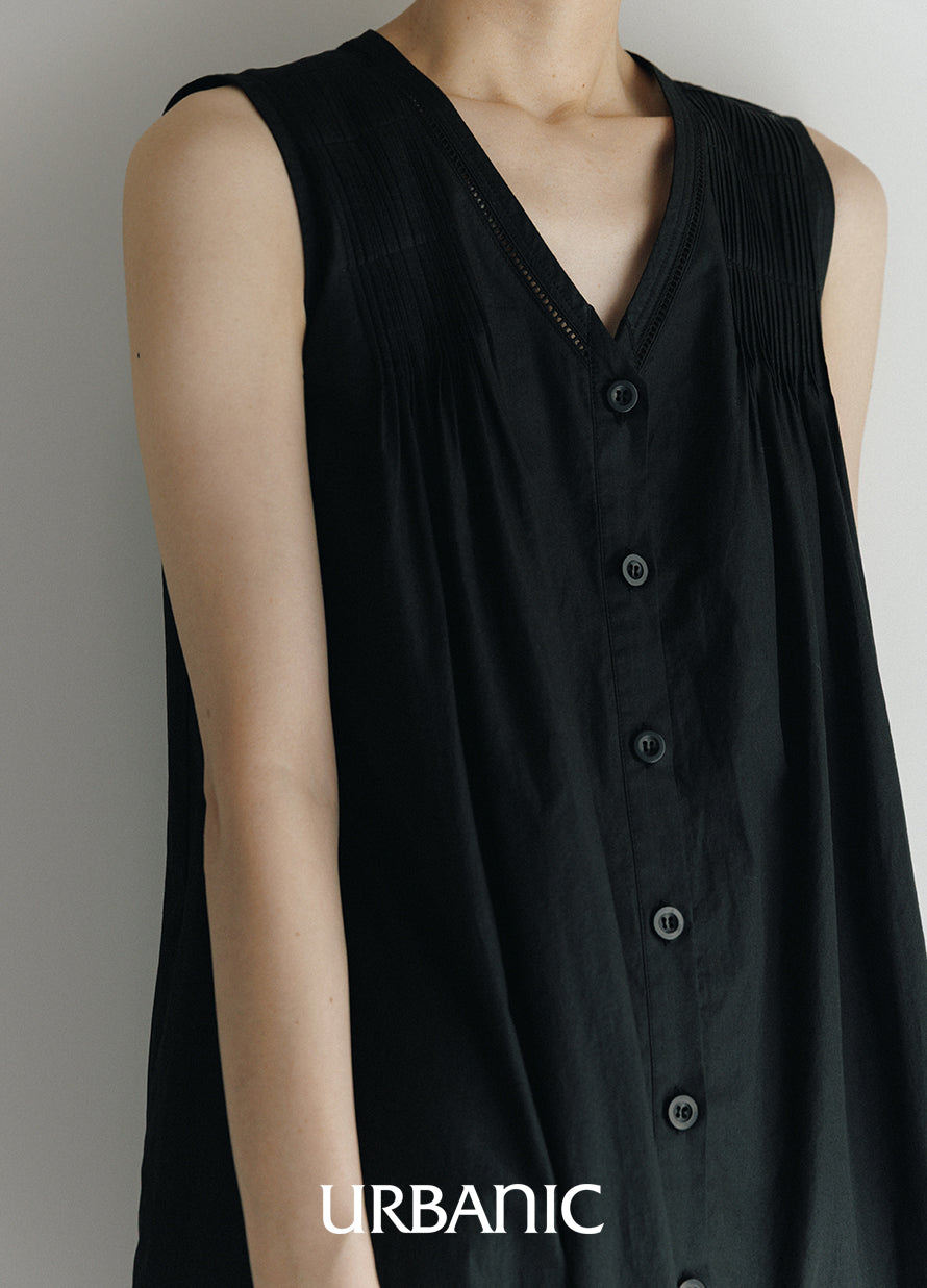 The Crease One-piece carries a quiet order, defined by its fine pintuck detailing.