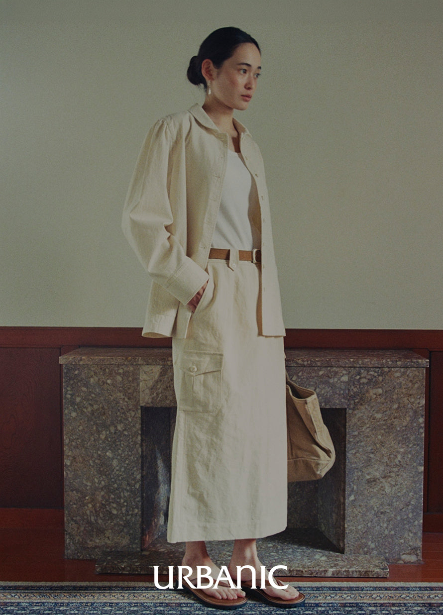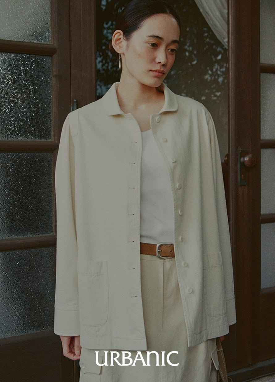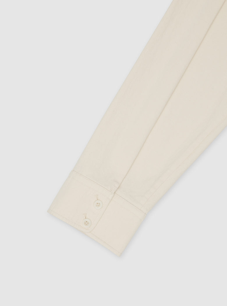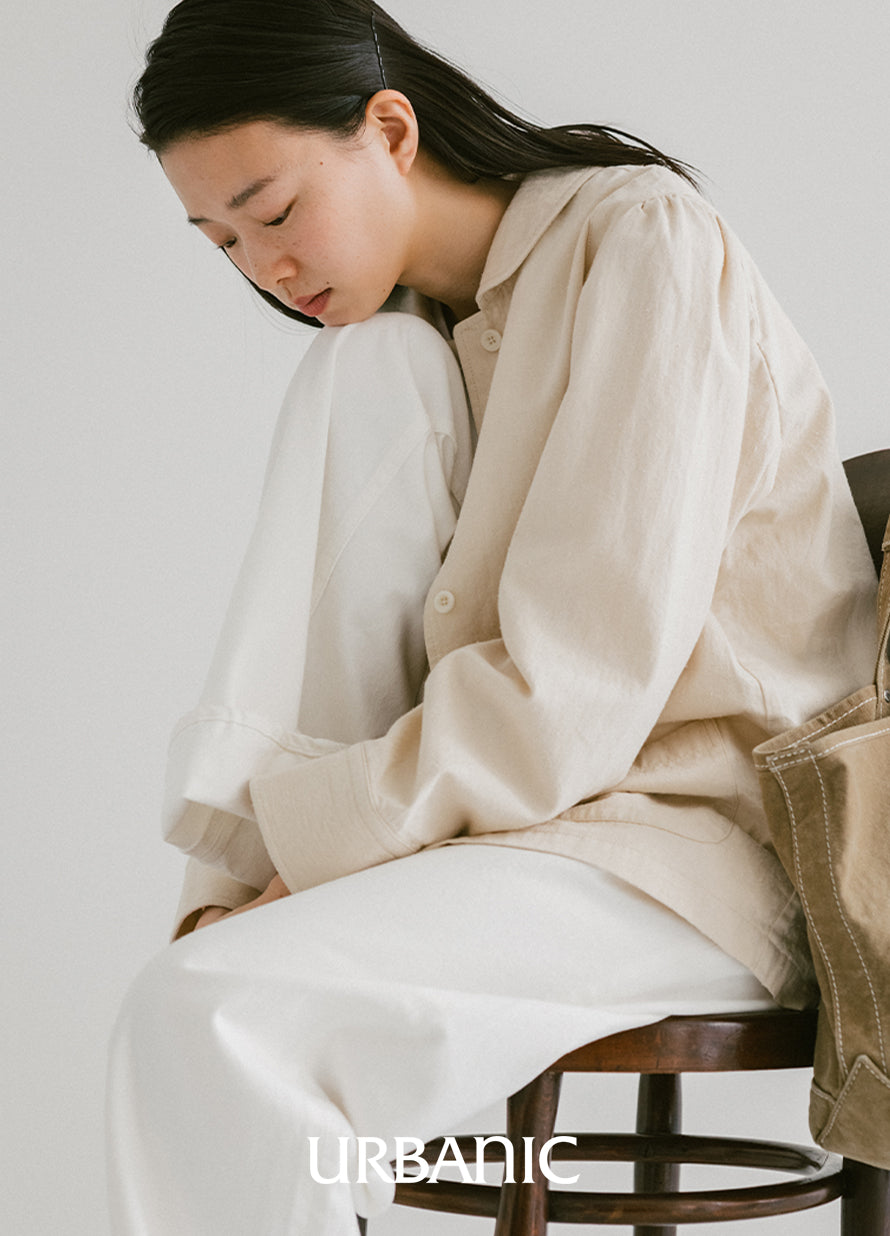 A shirt crafted from a cotton-silk blend, featuring naturally visible slub textures that lend a soft, romantic vintage feel while remaining practical for everyday wear.