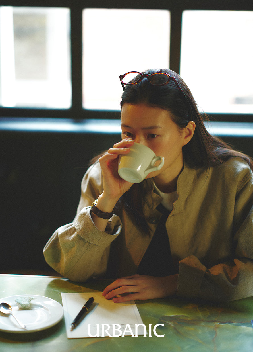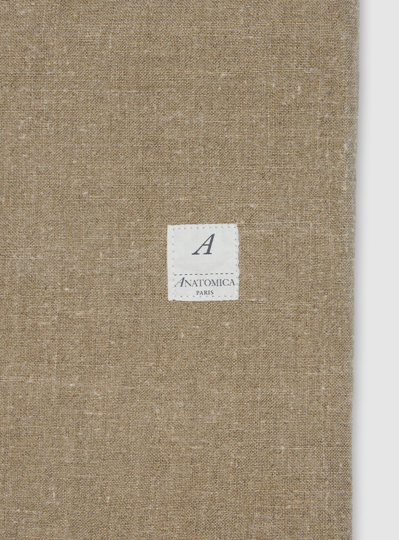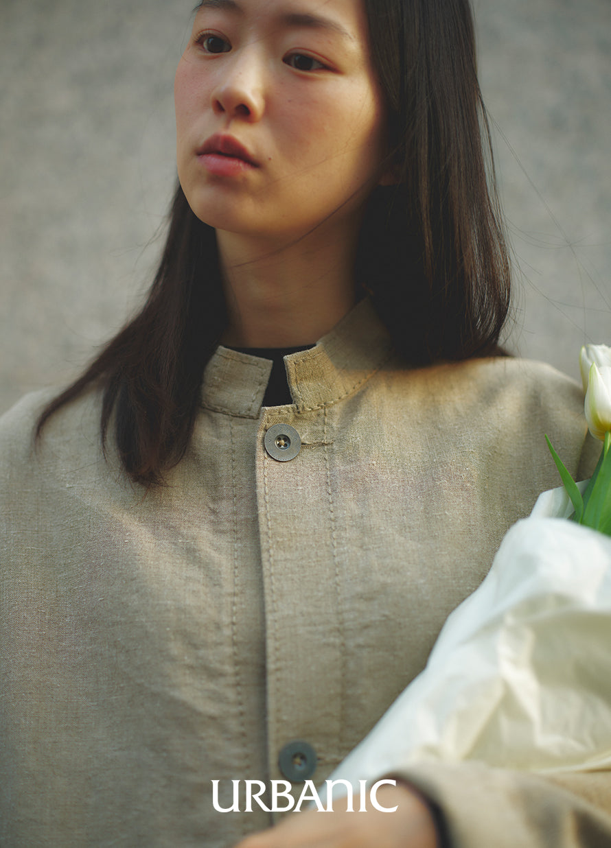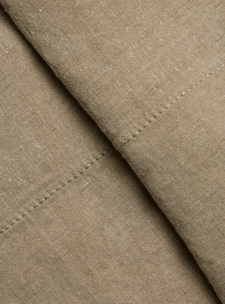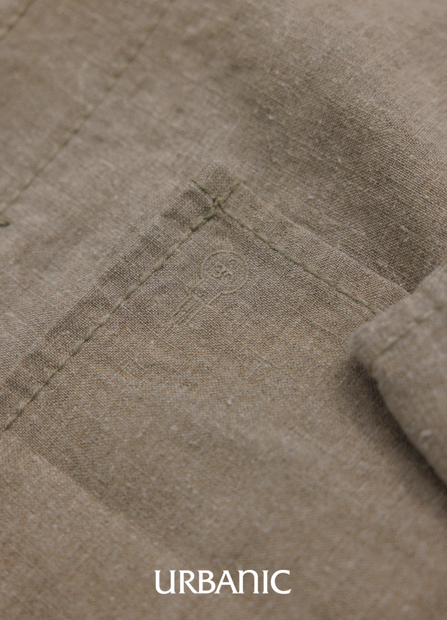 Made from vintage French military sheet fabric, featuring a low standing collar and large patch pockets with a subtle aged character.