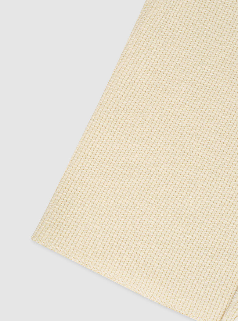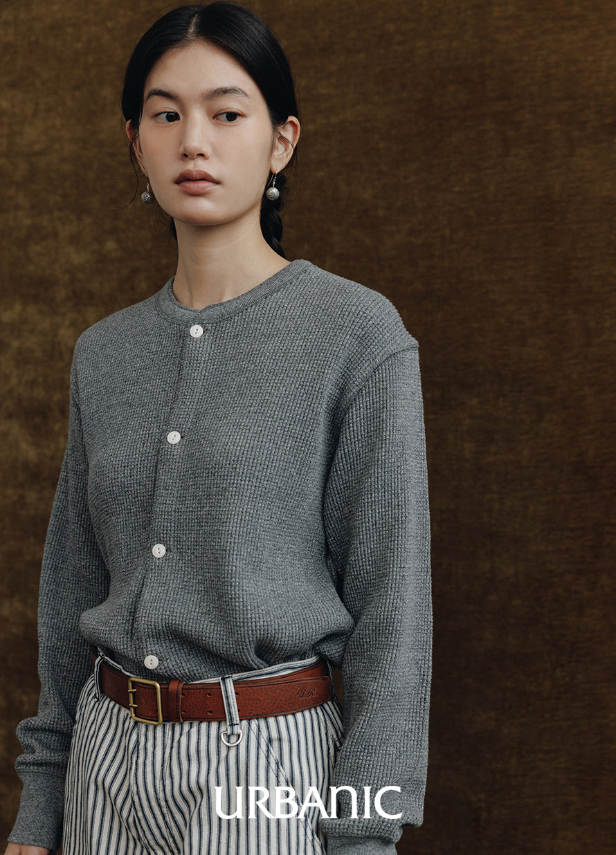 The Draftman Waffle Cardigan is the result of a collaboration between Healthknit—renowned for its practical and timeless American sportswear—and URBANIC. Made from a sturdy cotton super-heavy waffle fabric, this piece combines durability with a relaxed yet refined silhouette.