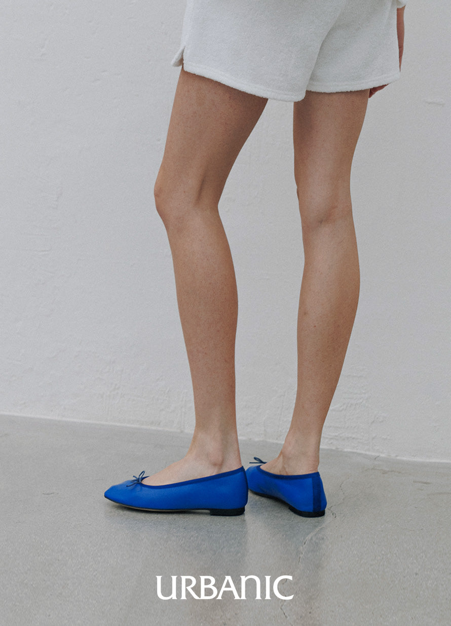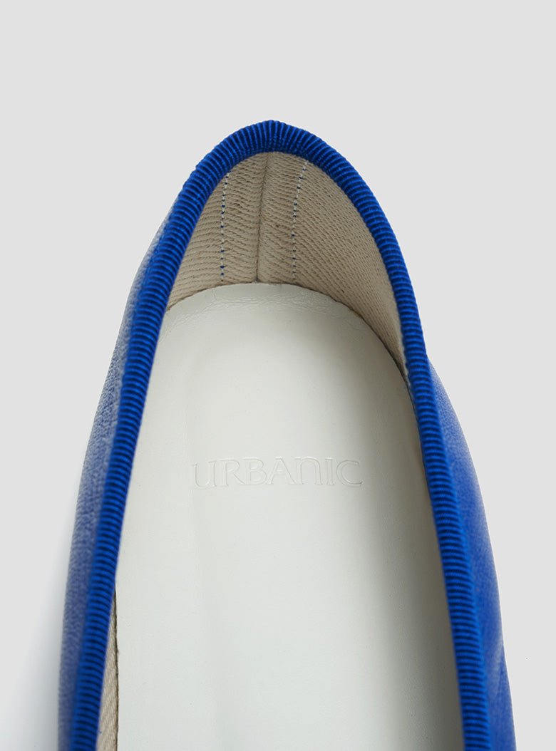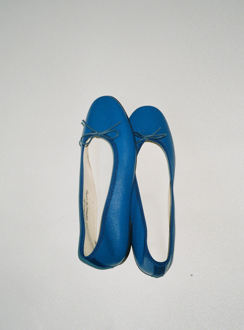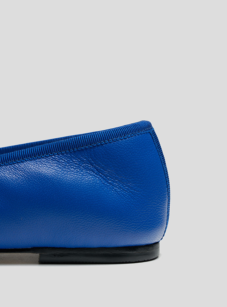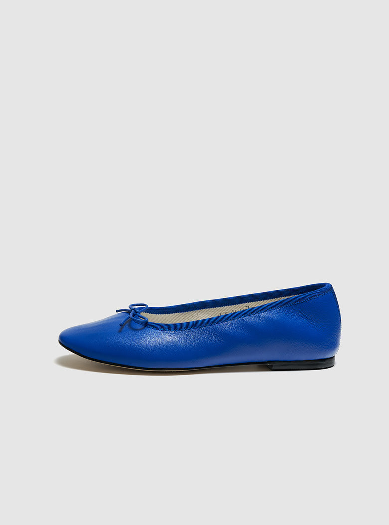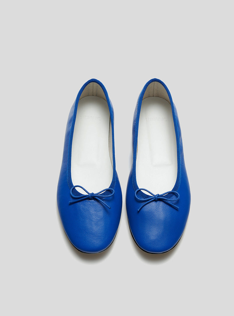 The Ecole Ballet Flat takes its cues from the graceful silhouette of classic ballet shoes, gently embracing the foot with soft lambskin in a striking shade of blue.