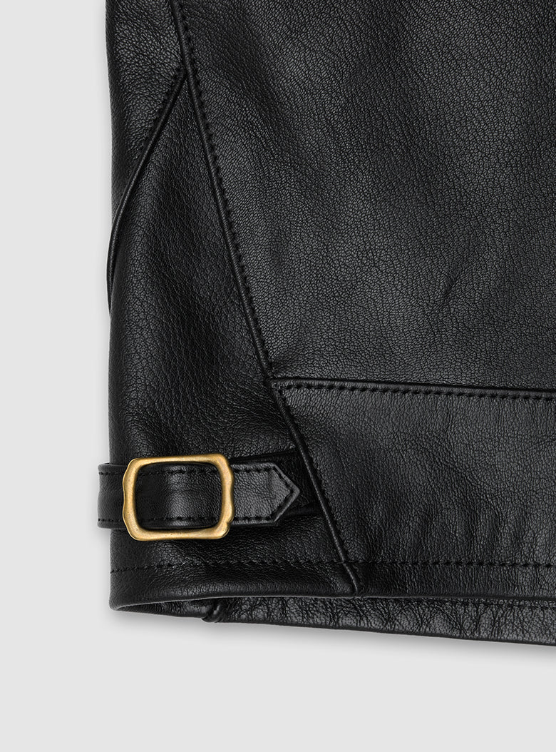 A goatskin leather jacket inspired by the Menlo Cossack jacket famously worn by Albert Einstein.