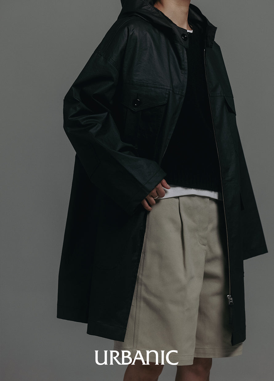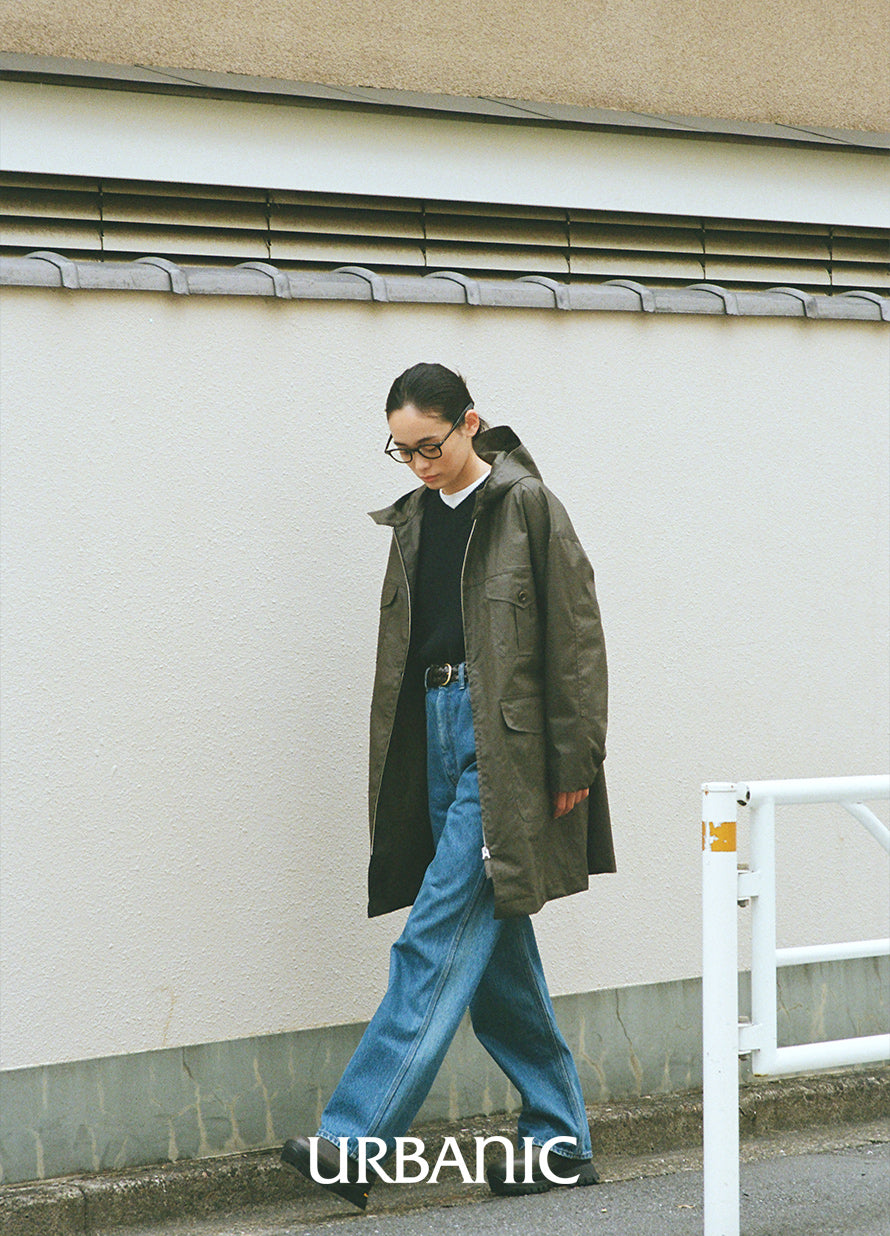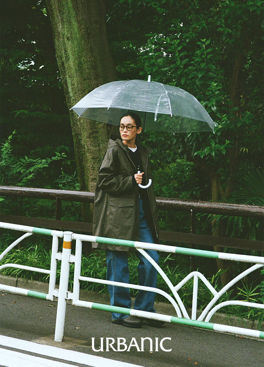This classic outerwear is perfect for transitional seasons. It features a semi-A-line silhouette with practical pocket details, and comes with a hood designed with sun visor characteristics.