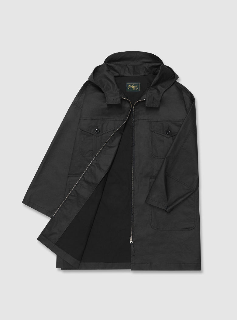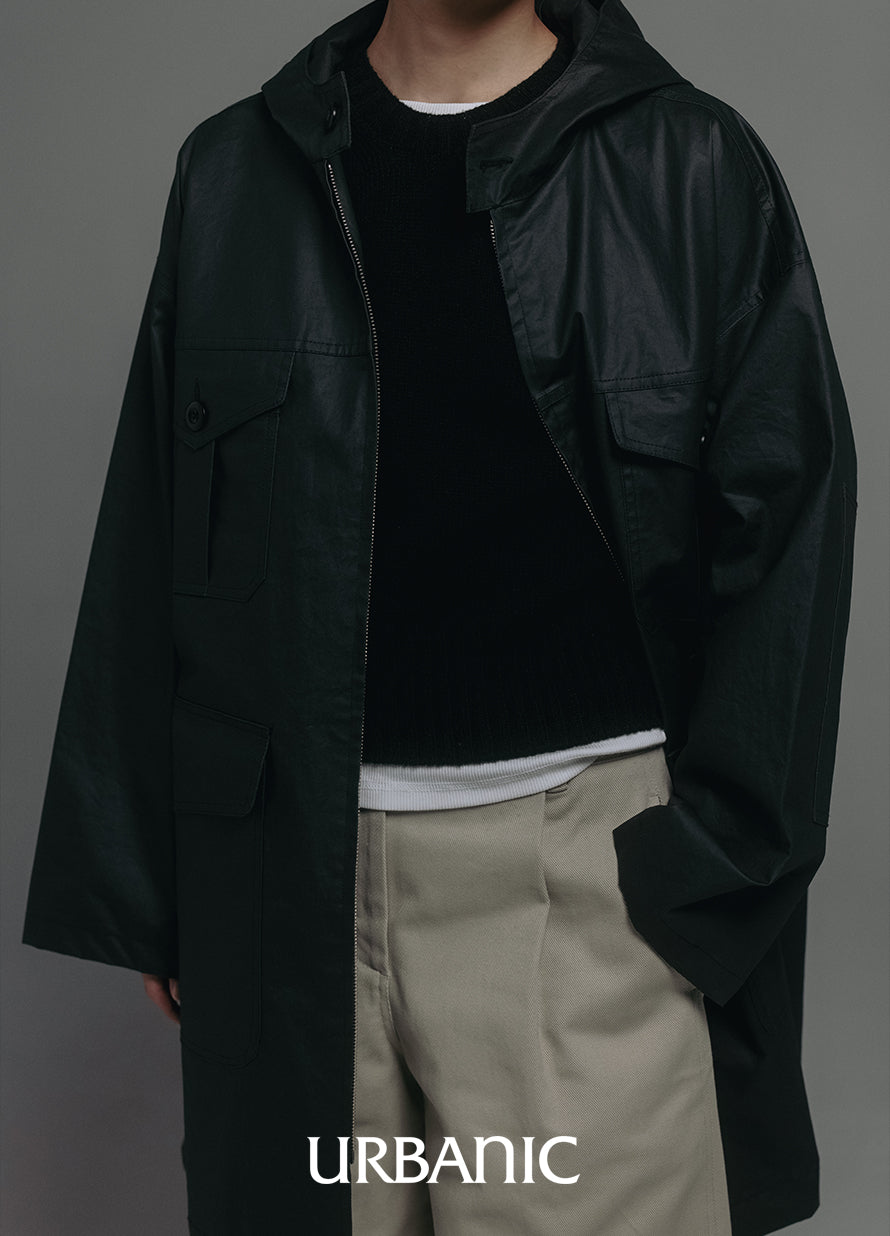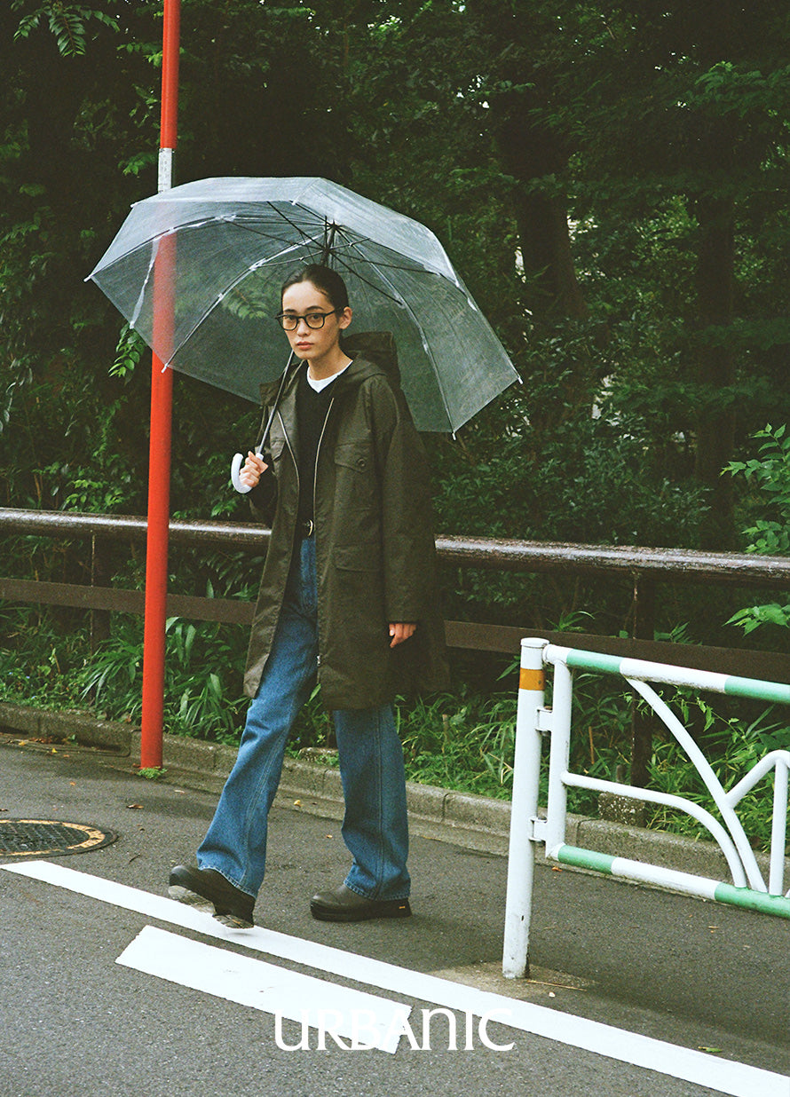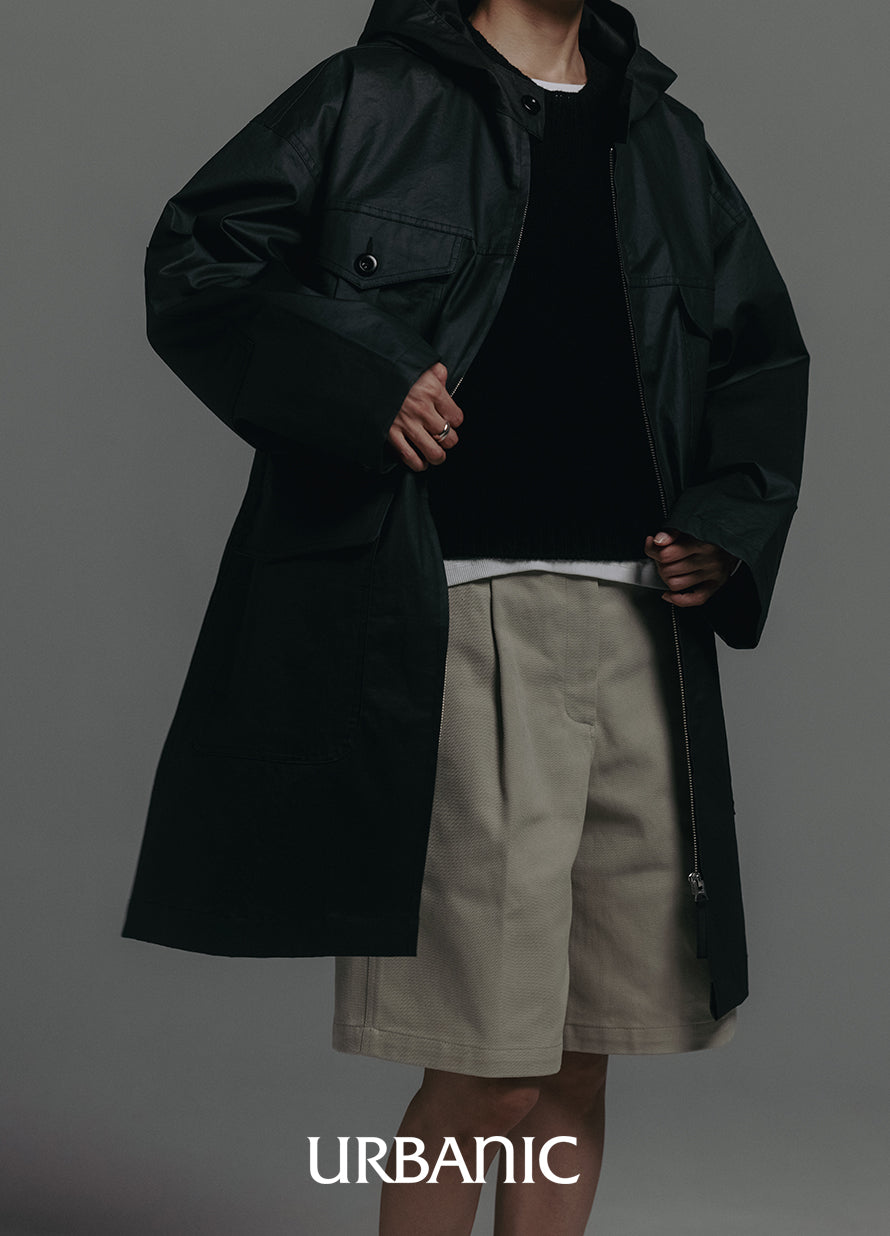 This classic outerwear is perfect for transitional seasons. It features a semi-A-line silhouette with practical pocket details, and comes with a hood designed with sun visor characteristics.