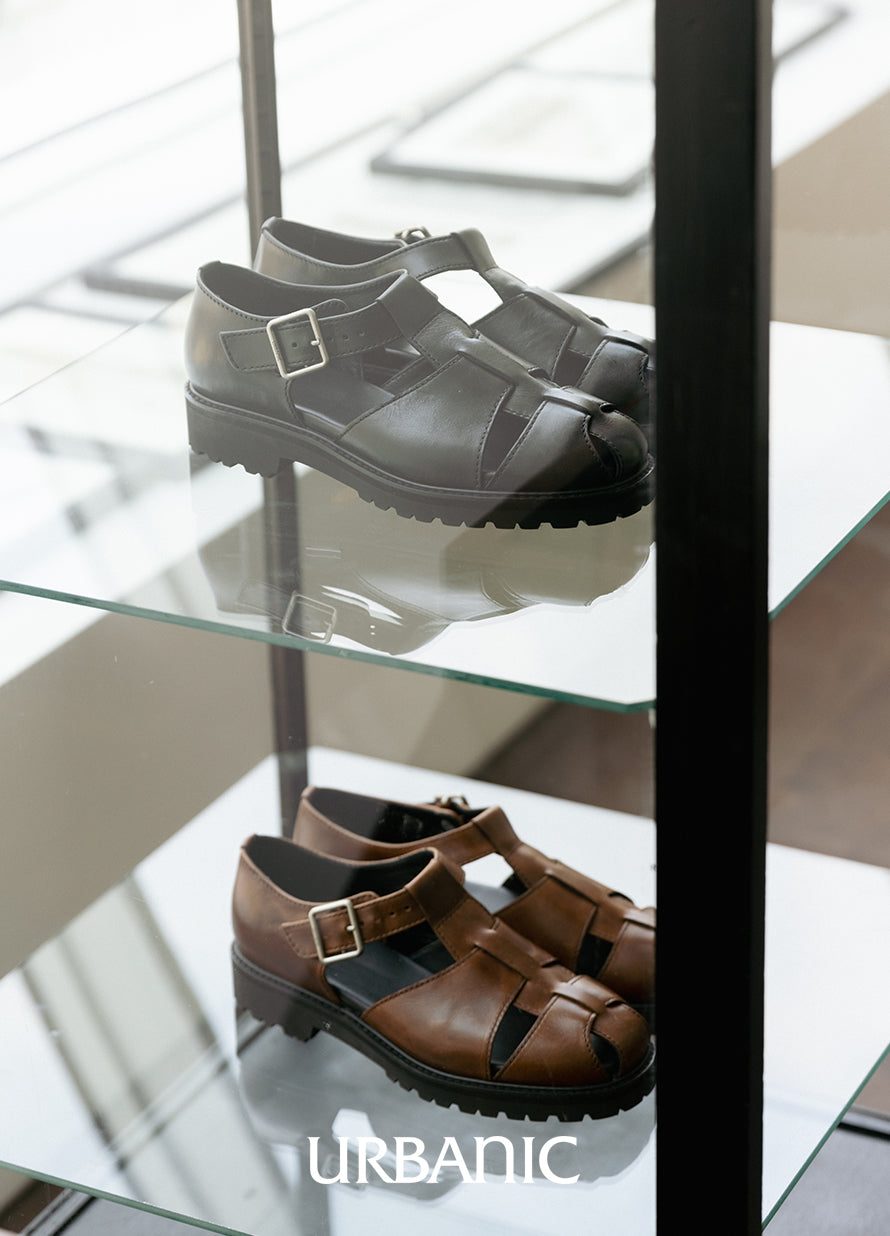 The Fisherman Sandals combine a solid presence with classic charm. Inspired by the original sandals worn by fishermen—designed to let water drain easily as an alternative to shoes—this pair features a grounded, gender-neutral silhouette crafted from oil pull-up leather that adds a subtle sheen and rich character.