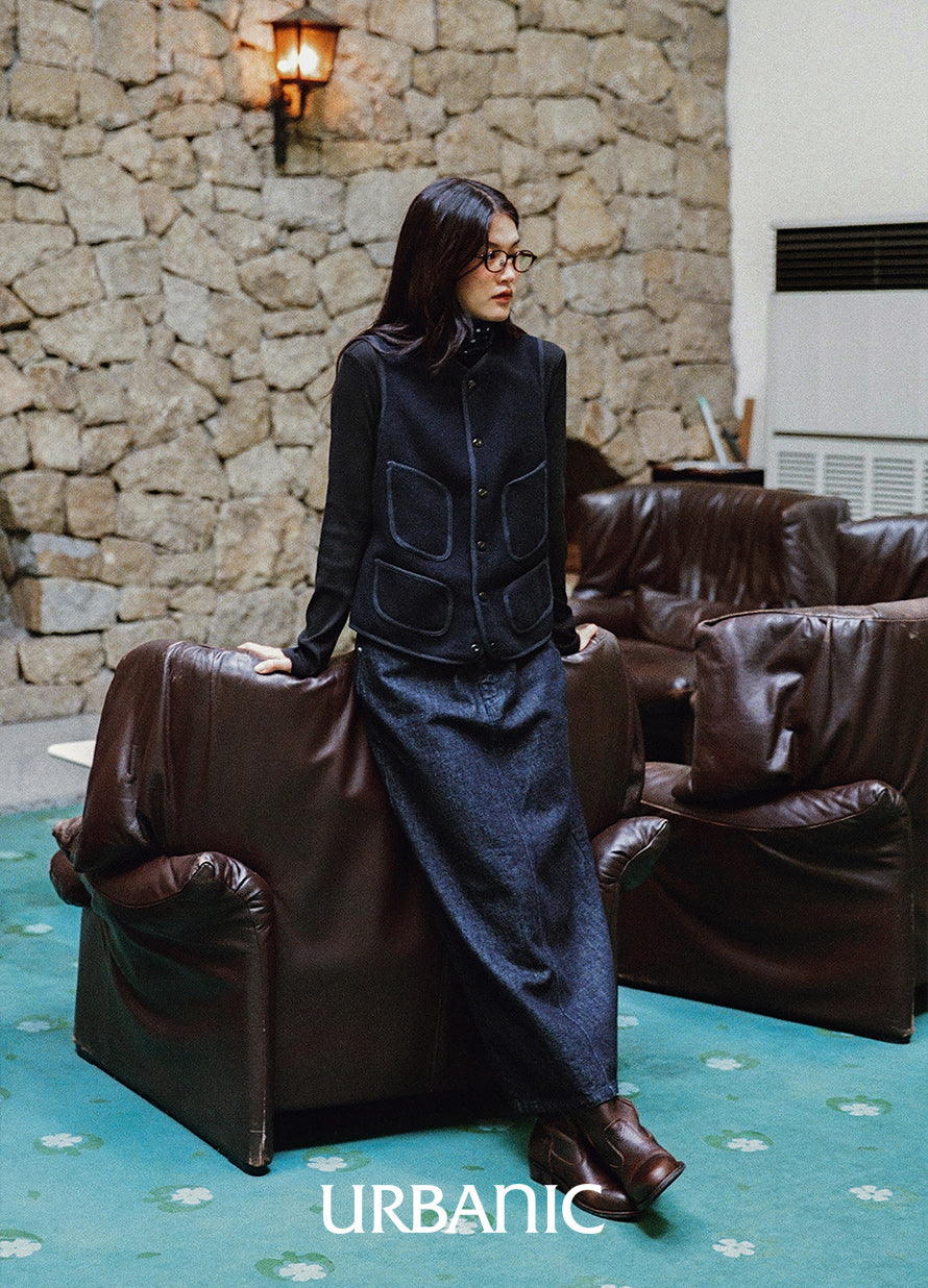 The Fishtail Denim Skirt combines the charm of classic workwear details with the simplicity of clean indigo denim. Designed in a sleek long silhouette, it features a high fishtail-style waistband that supports the back, complemented by belt loops and a cinch back for a refined, structured finish.
