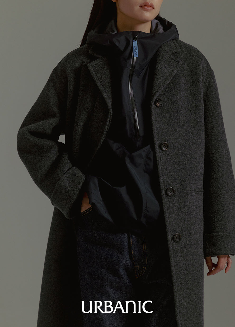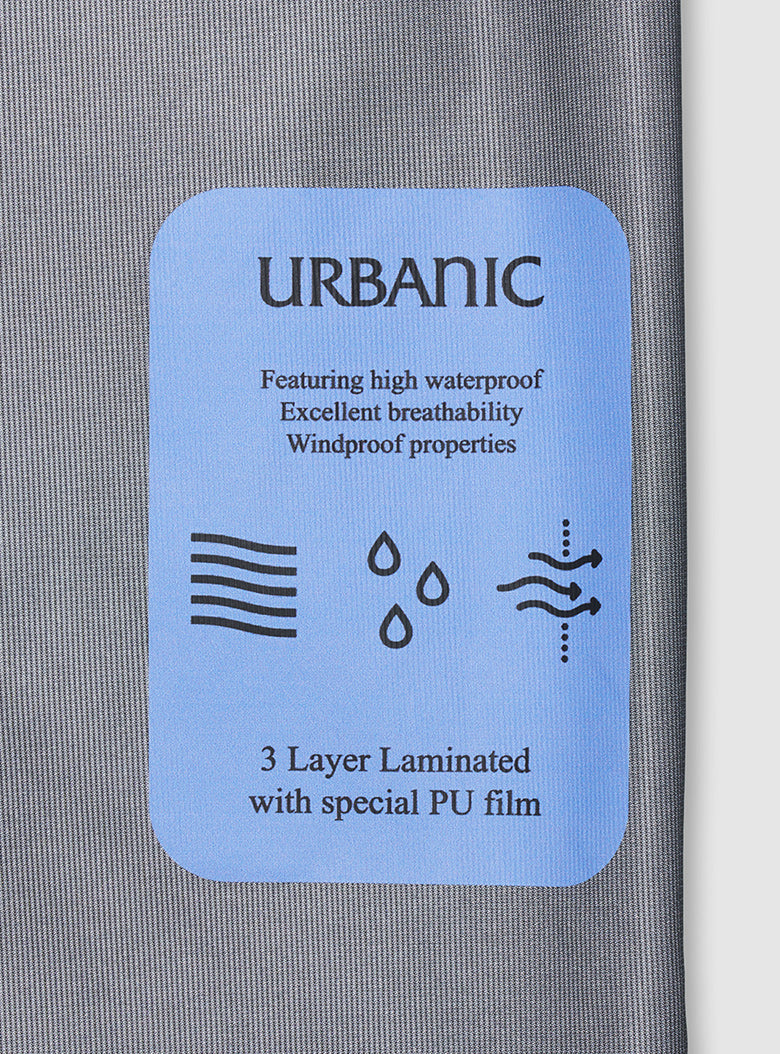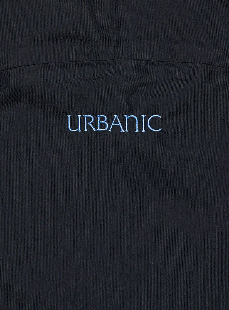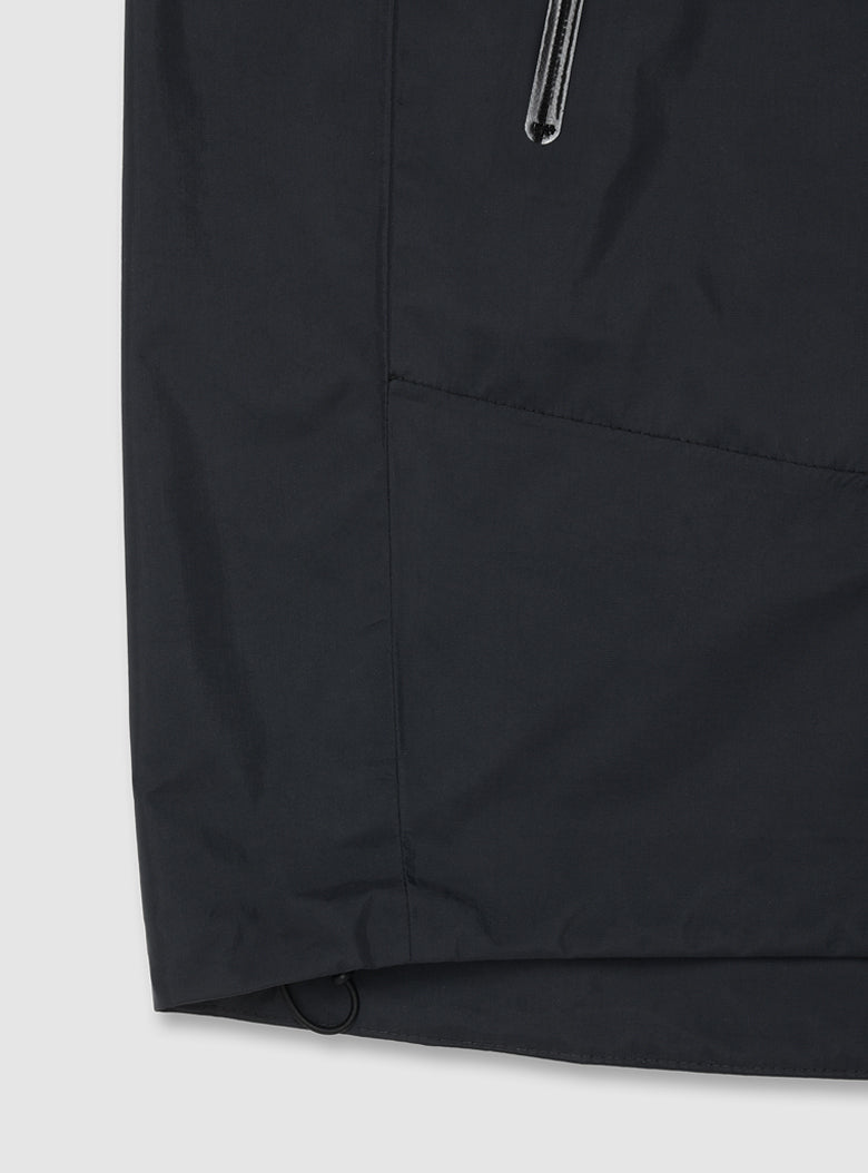 This is a black anorak-style jacket with waterproof and breathable properties. It includes adjustable drawstrings that allow for enhanced warmth and fit.