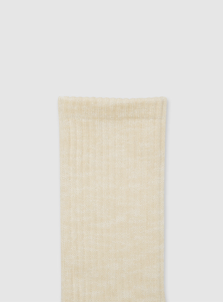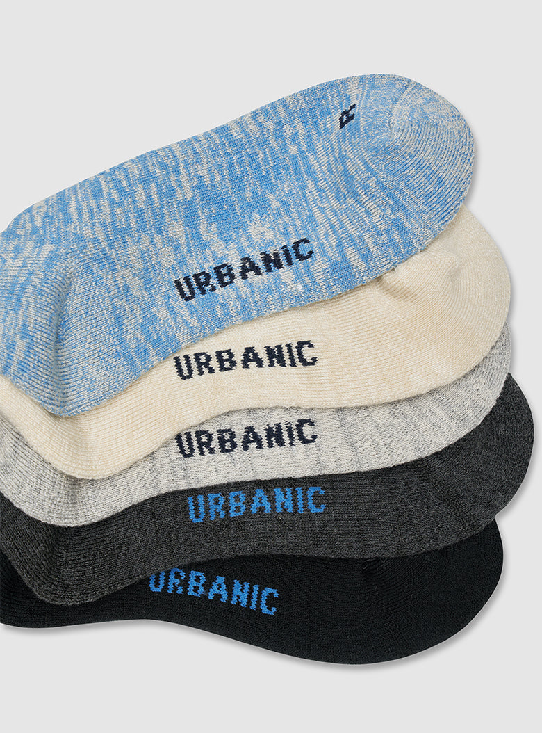 These socks are crafted from a durable, thick-pile knit blend of acrylic, cotton, and wool. They are lightweight yet offer excellent warmth and elasticity. Available in five colors, they provide a versatile choice for any wardrobe.