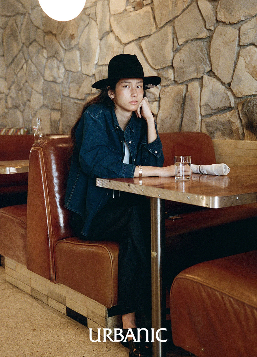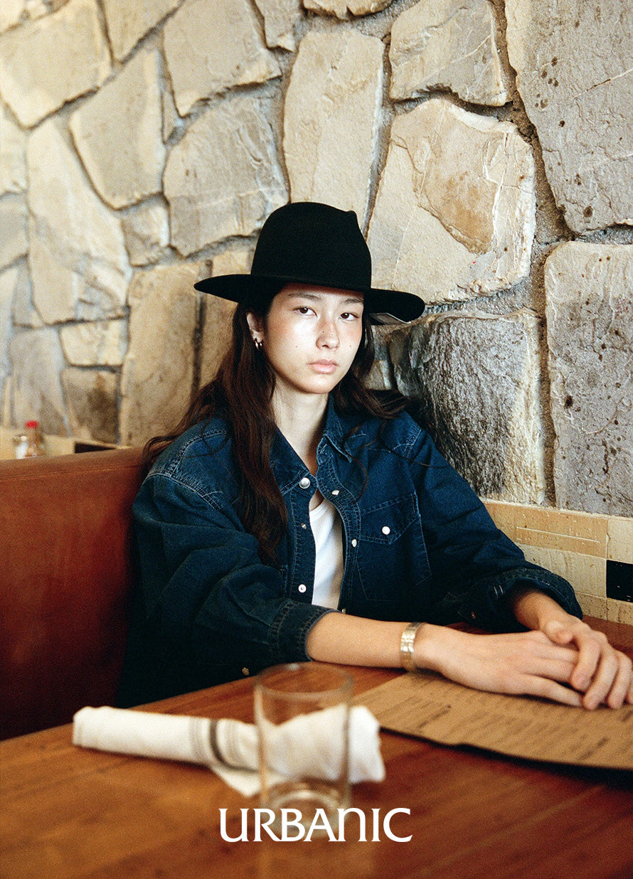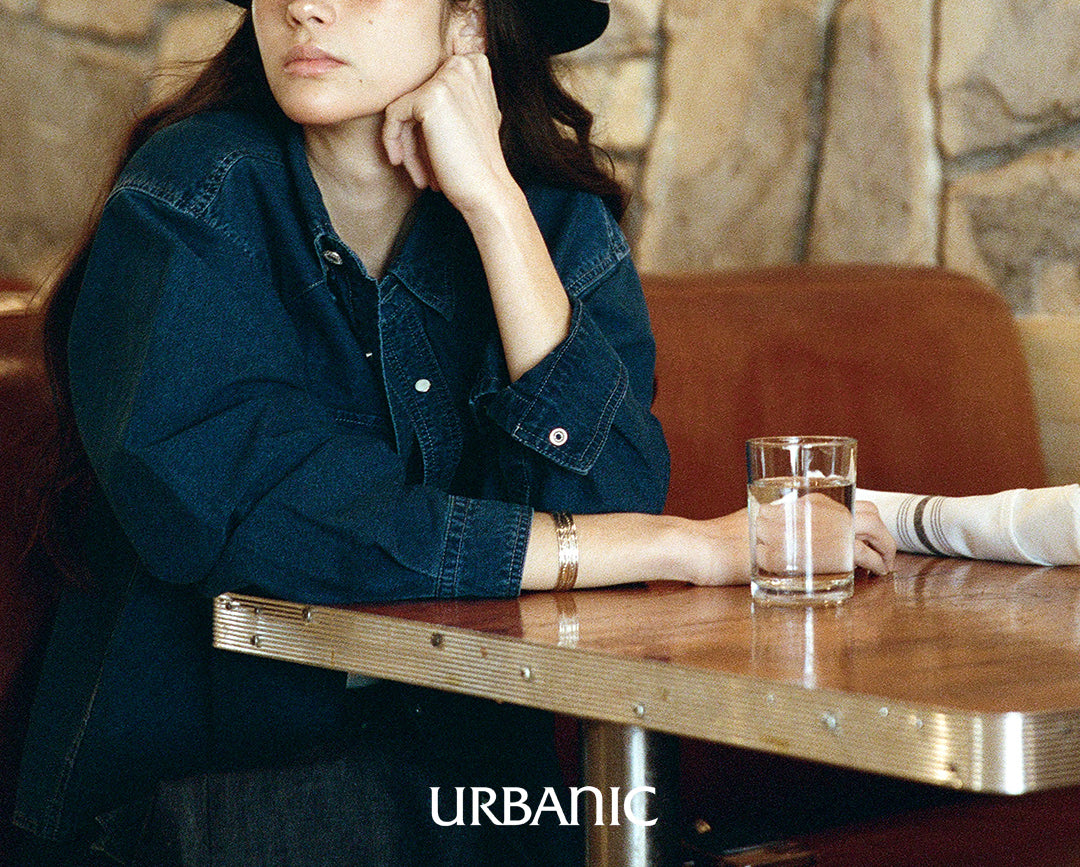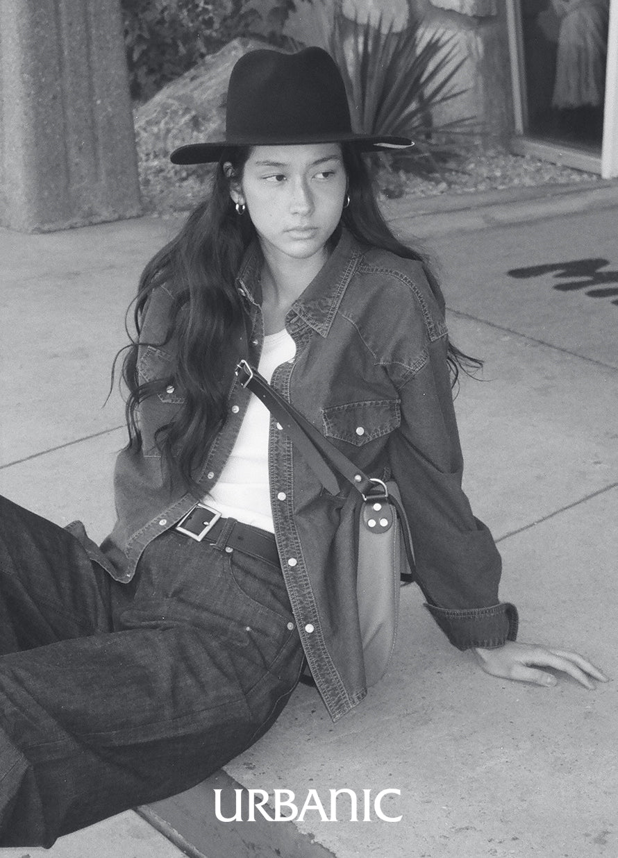 Made from a deep indigo denim fabric developed exclusively by Urbanic, it pairs with delicate silver buttons for a striking contrast, bringing a sense of elevated Western sophistication.