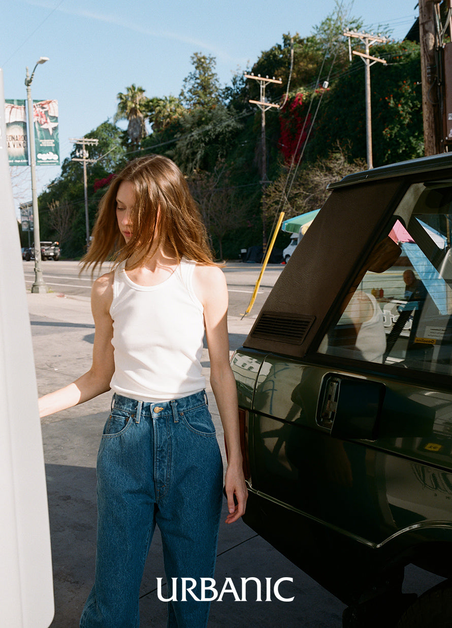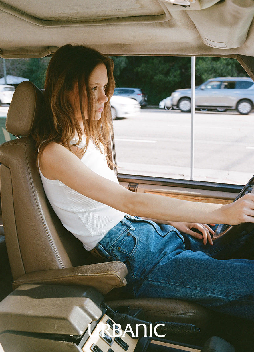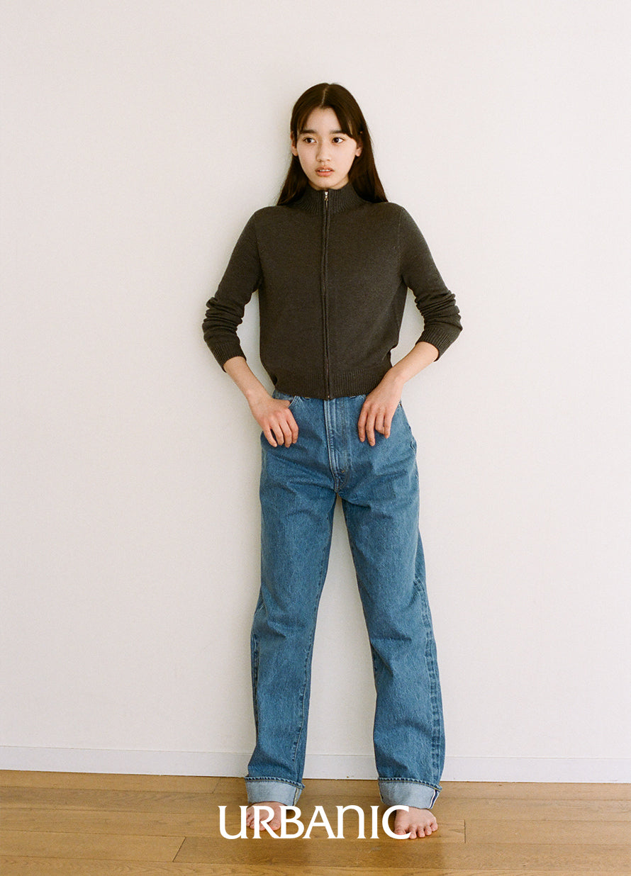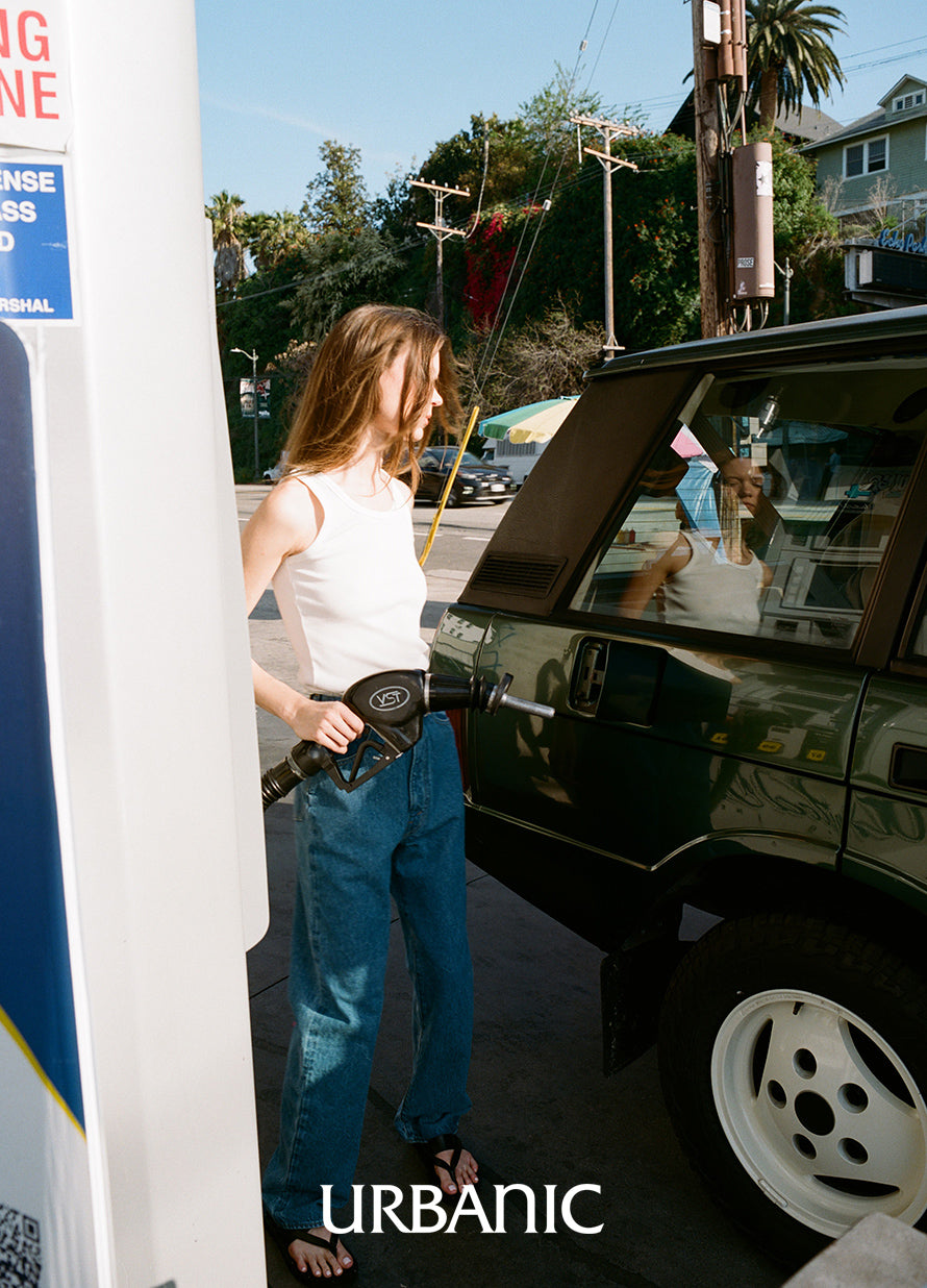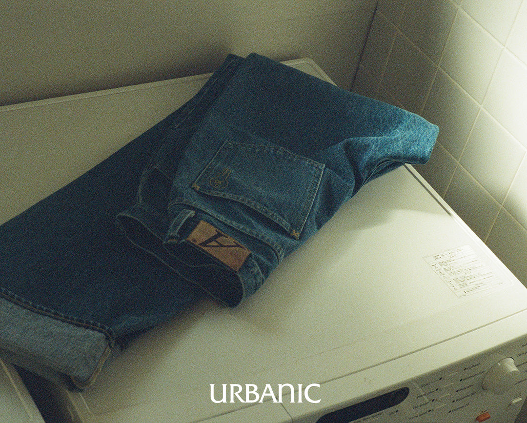 These are Marilyn pants in blue, created in collaboration with Anatomica. They feature a long length ideal for rolling up and a relaxed fit.