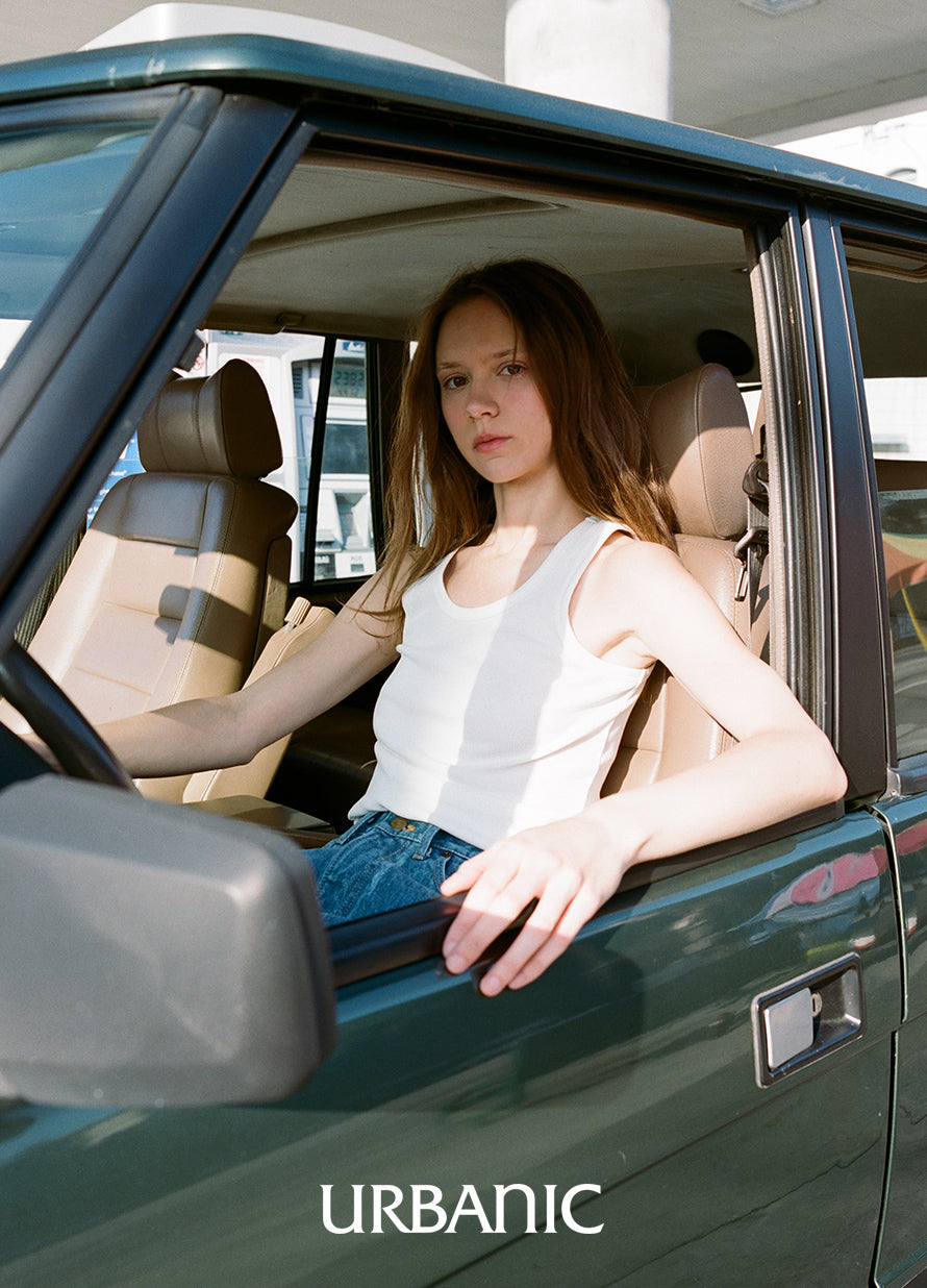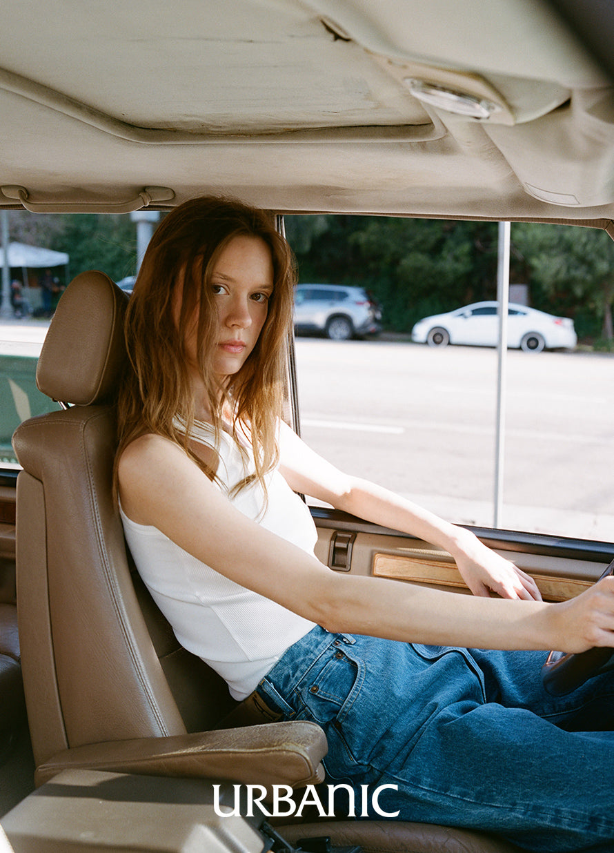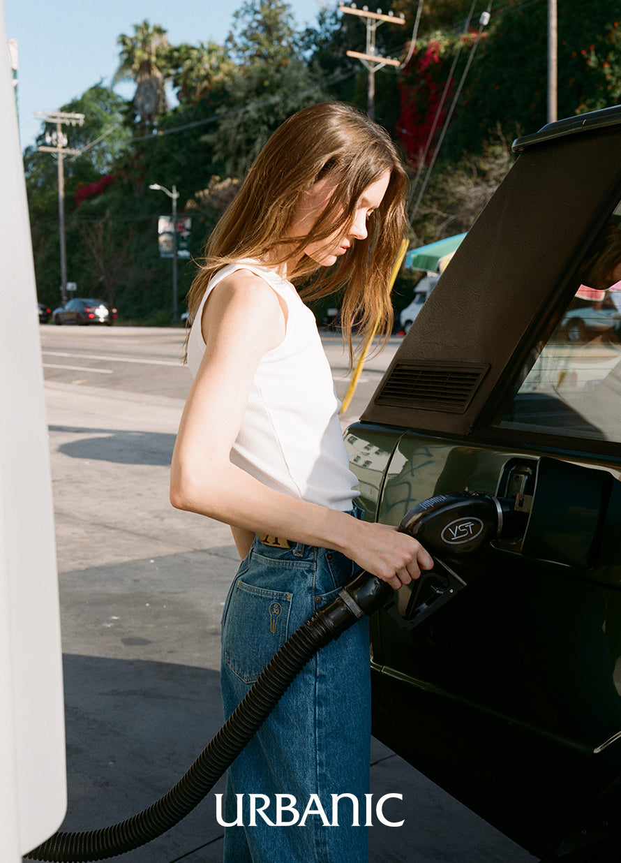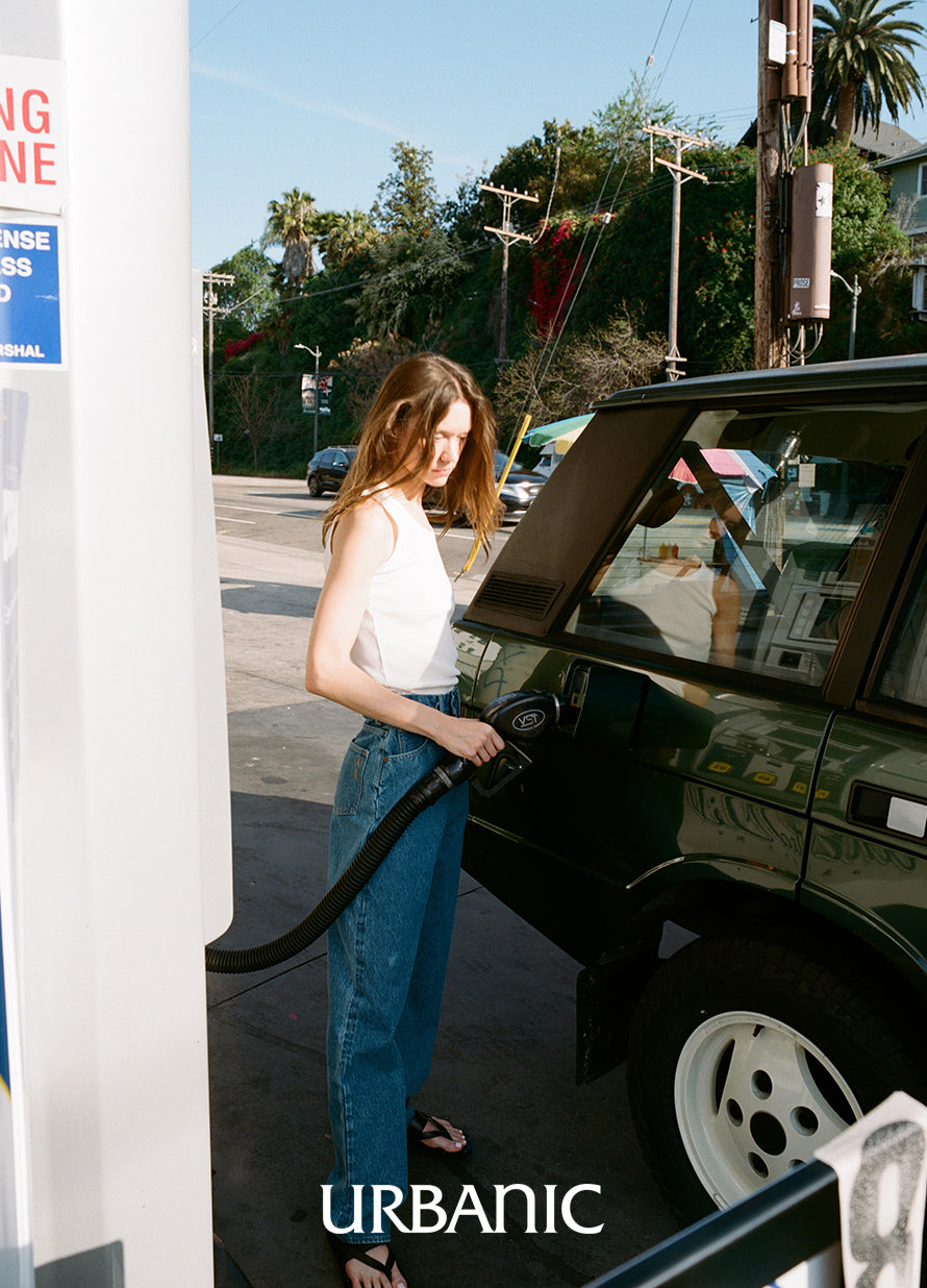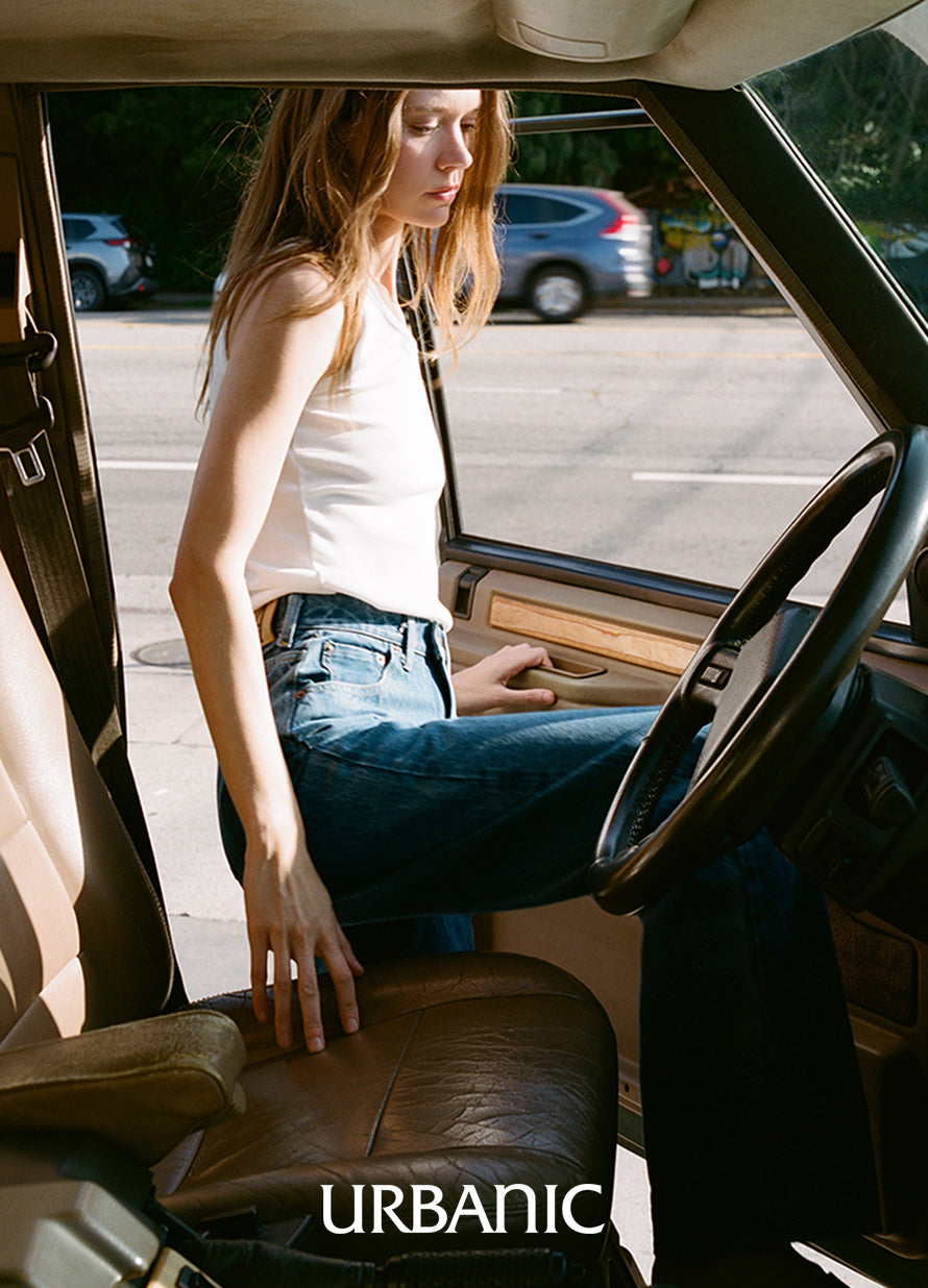 These are Marilyn pants in blue, created in collaboration with Anatomica. They feature a long length ideal for rolling up and a relaxed fit.