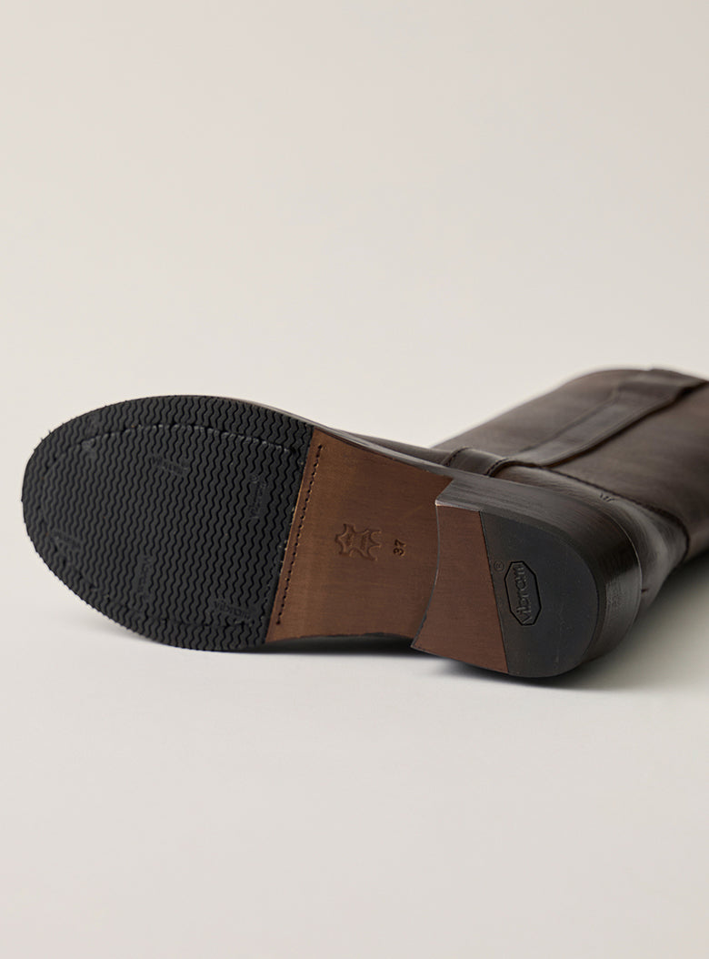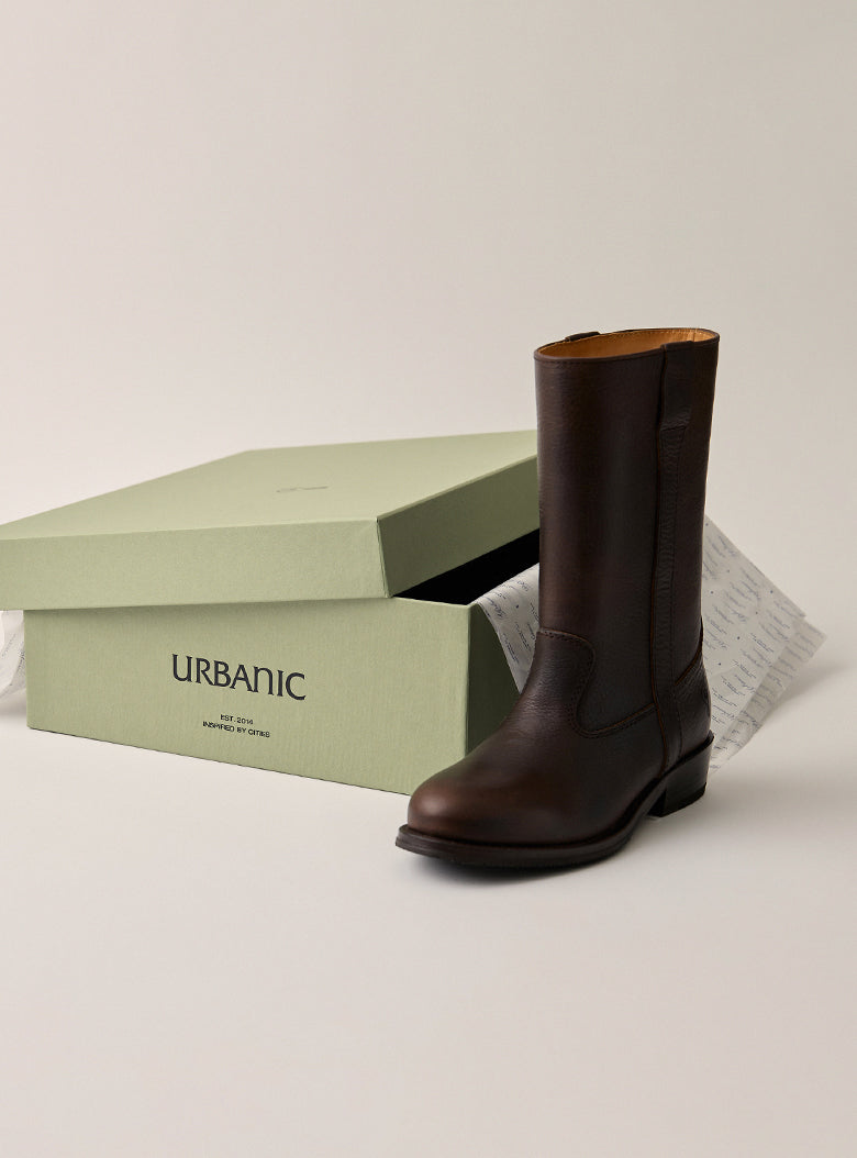 Oiled Western Boots are defined by their beautiful two-tone coloring and the rich texture of premium leather. A softly rounded toe, a comfortably wide shaft, wing-shaped paneling that wraps the ankle, and elongated leather overlays along each side come together to express a clean, understated take on classic Western style.