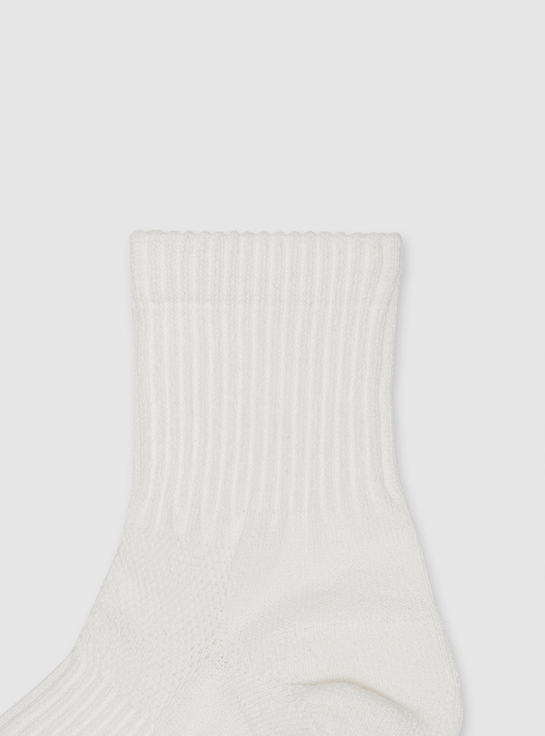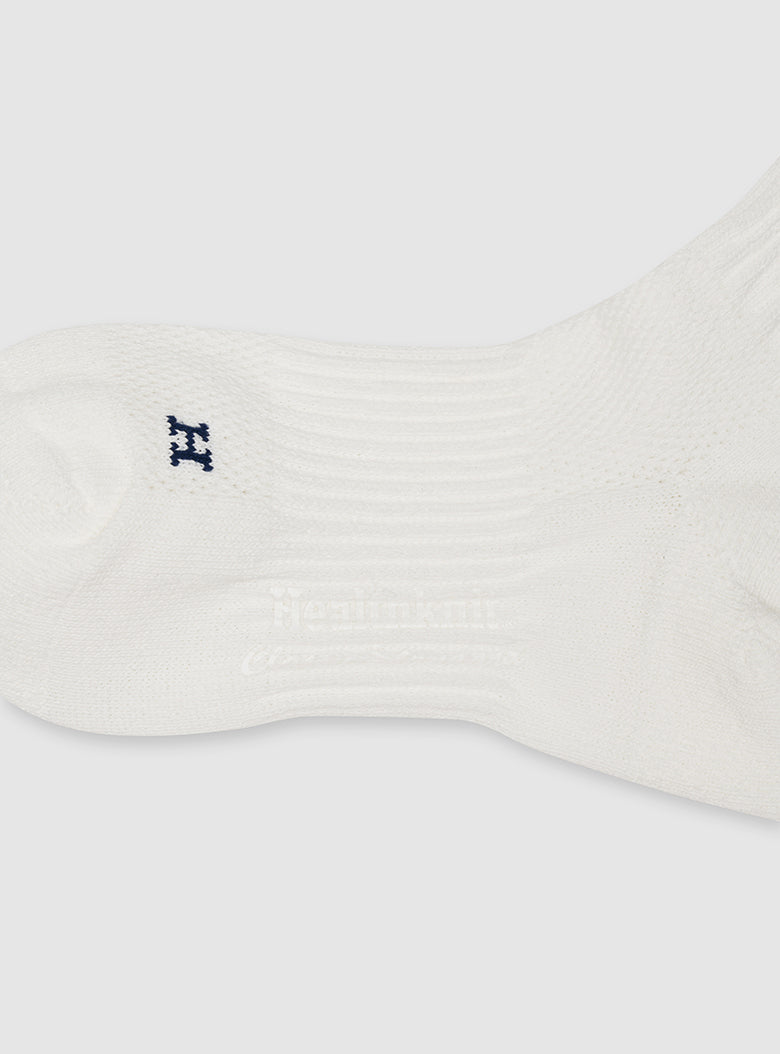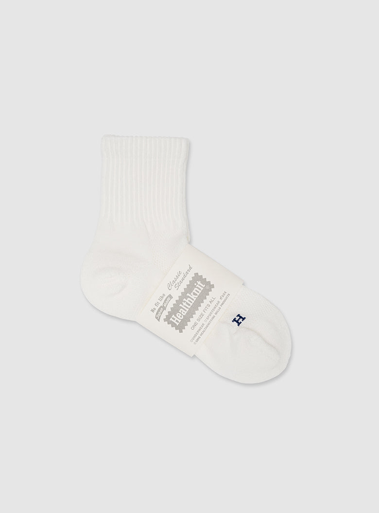 The Paper Ribbed Socks are a collaboration between Healthknit—known for its practical American sportswear heritage—and URBANIC. Knit with a crisp, dry-touch paper-blend yarn, the texture offers a structured feel with understated character.