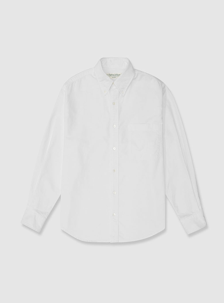 This is an Oxford shirt available in two colors. The design features minimal details and offers a standard fit when worn. It has undergone a washing process to achieve a crinkled, natural texture.