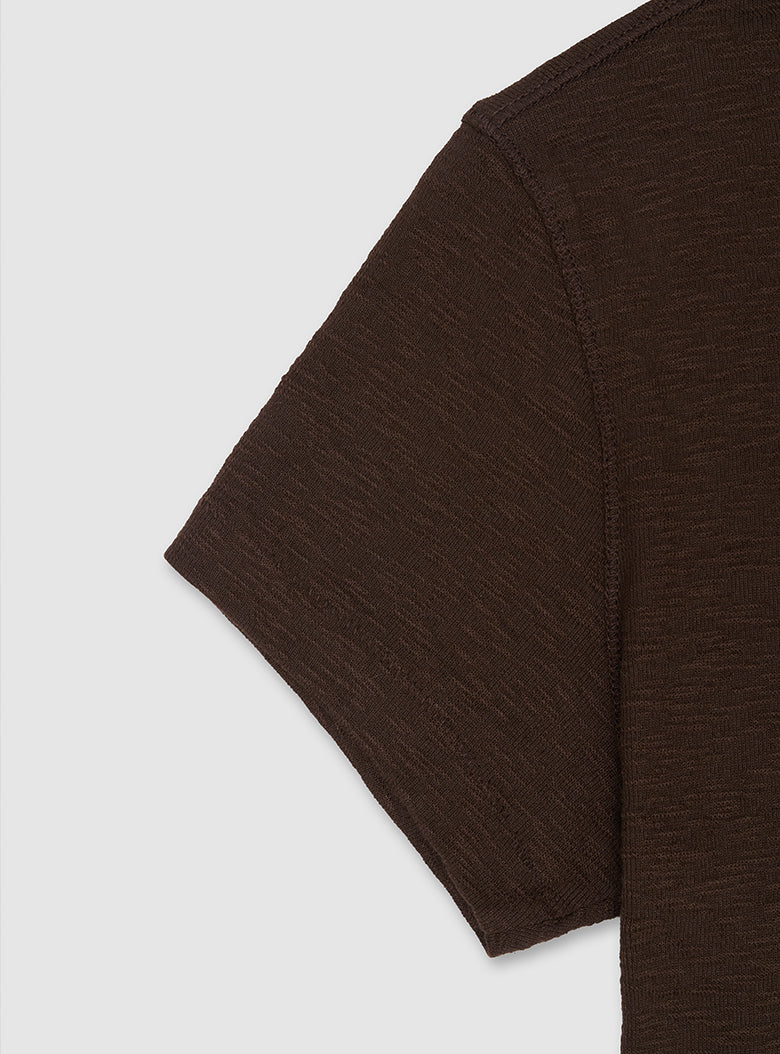 Originally worn as practical innerwear by British rowing teams in the 19th century, the classic Henley shirt has been reimagined for modern women in the form of the Pivot Tee. Crafted from a stretchy slub fabric with a naturally textured feel, it features a slim fit and cropped sleeves for a refined, yet effortless silhouette.