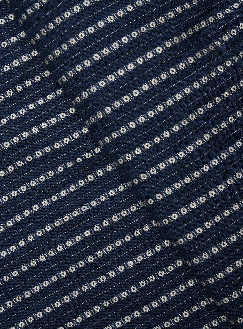 The Prairie Blouse captures the spirit of the open plains with its humble yet folkloric details. Crafted from a soft cotton-blend jacquard fabric, it features delicate floral motifs woven into subtle stripe-like patterns, highlighting the gentle charm of the material.