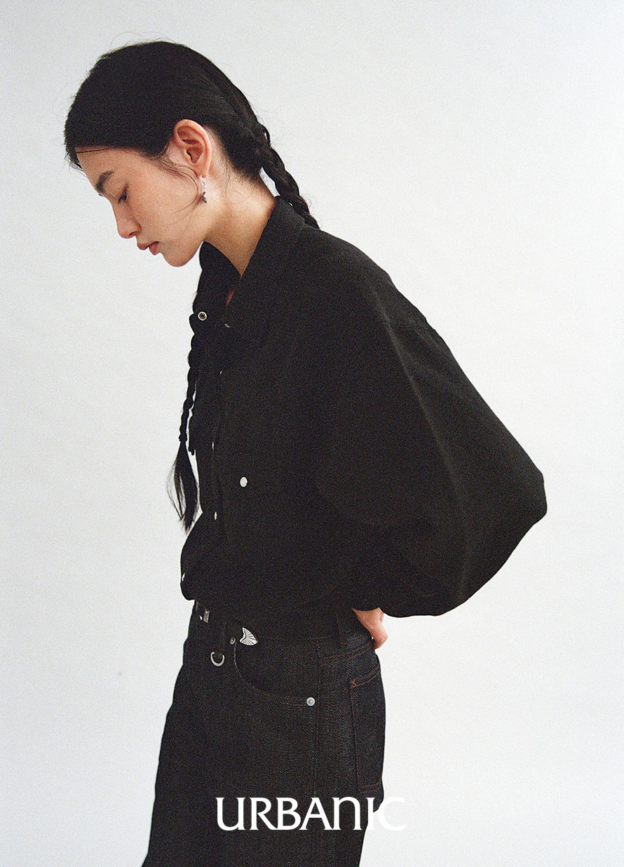 Woven from a textured linen blend and gently washed for a relaxed feel, it drapes effortlessly with a boxy, free-flowing silhouette. Broad shoulders and a roomy fit evoke the ease of a blouse, blending rugged character with quiet elegance.