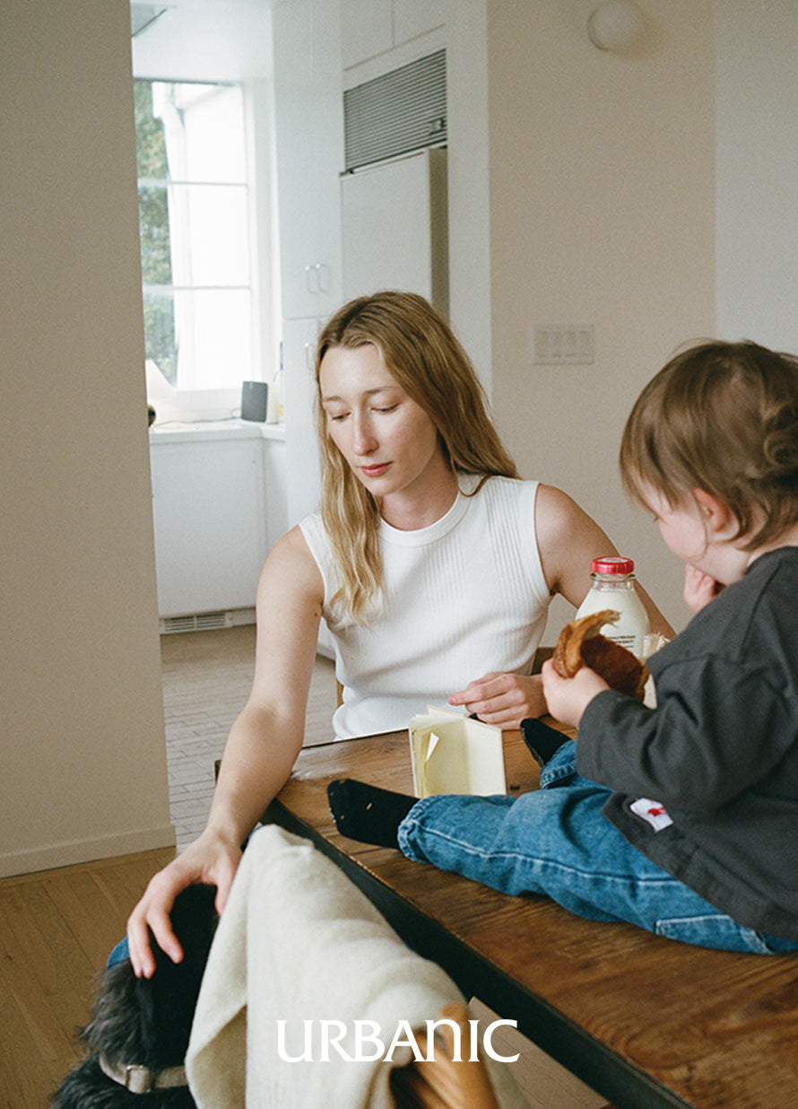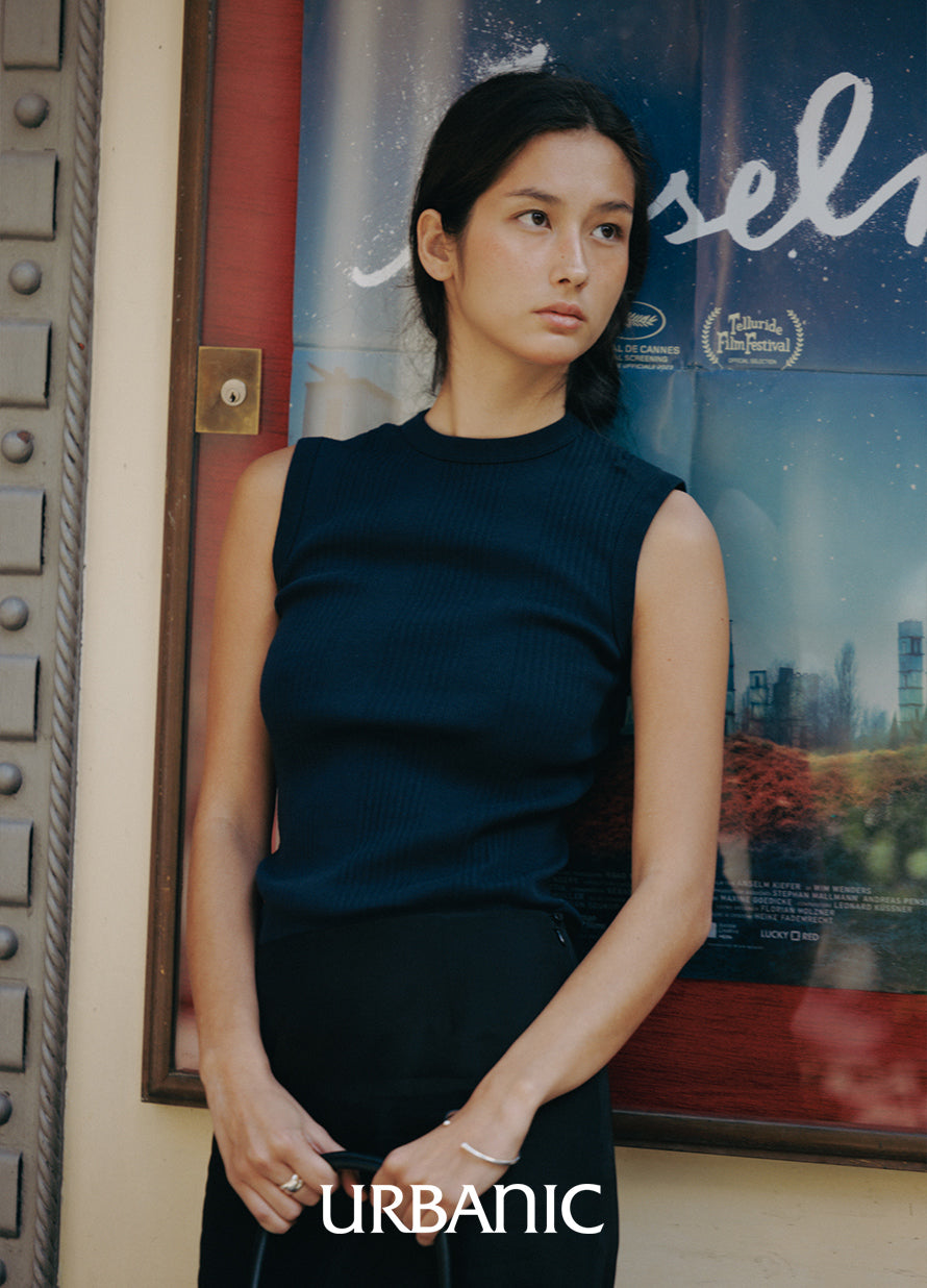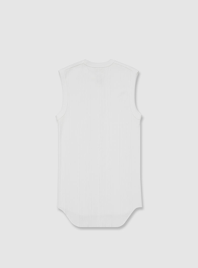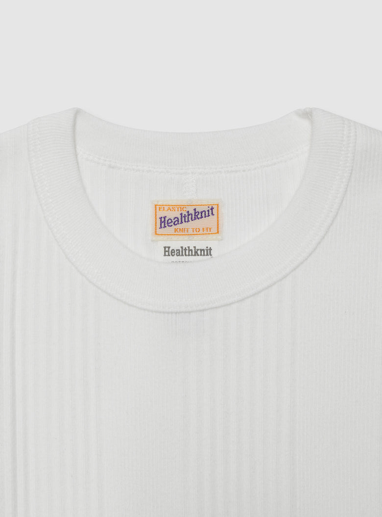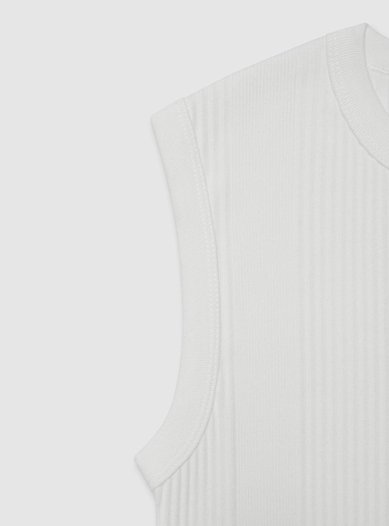 This sleeveless top from U.S.-based brand Healthknit is crafted from 100% cotton ribbed jersey—soft to the touch with excellent horizontal stretch, woven in a traditional ribbed pattern. The clean neckline and armholes are neatly finished, while the hemline drapes gently over the waist for a smooth, flattering silhouette. Simple yet elevated, it’s a refined basic with quiet confidence.