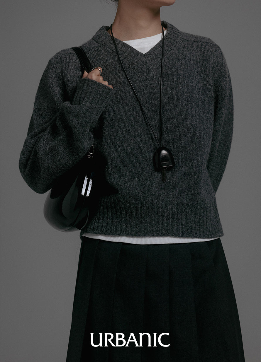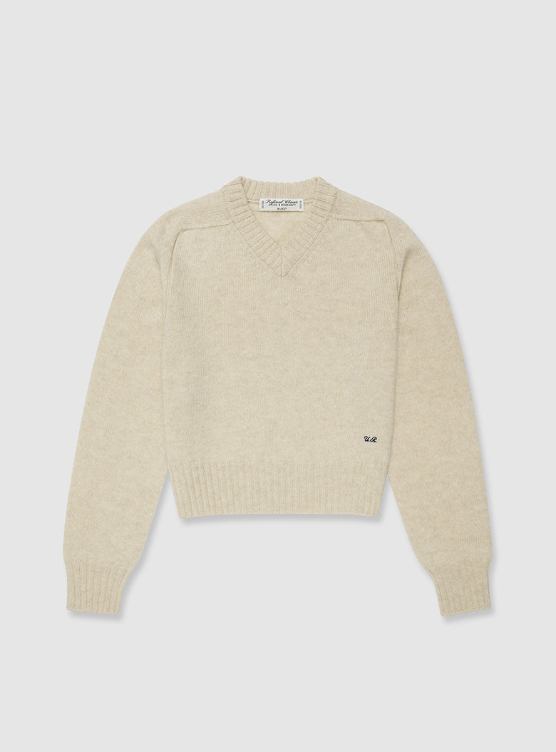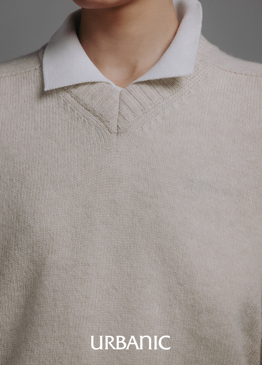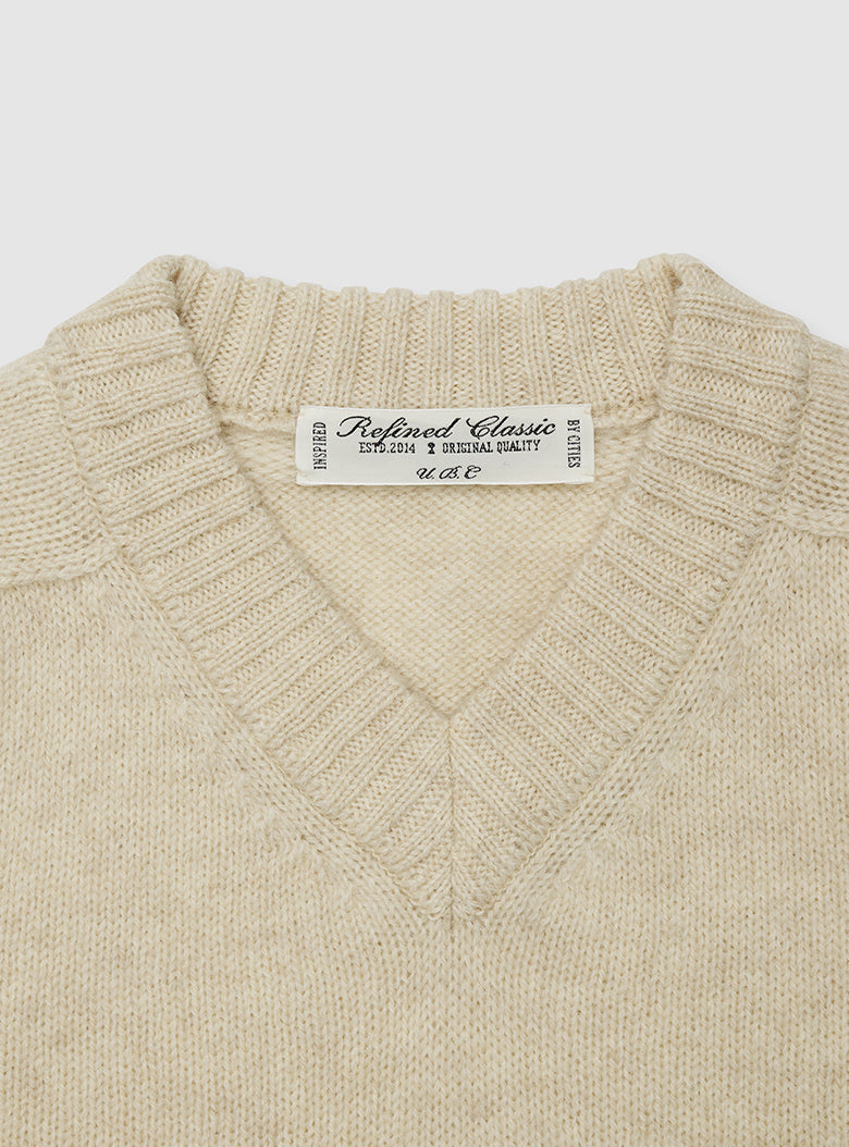 This lightweight and insulating V-neck knit is made using the whole-garment technique. It features a neckline that comfortably wraps around the neck with moderate depth and a length that slightly covers the waist, making it versatile for various uses.