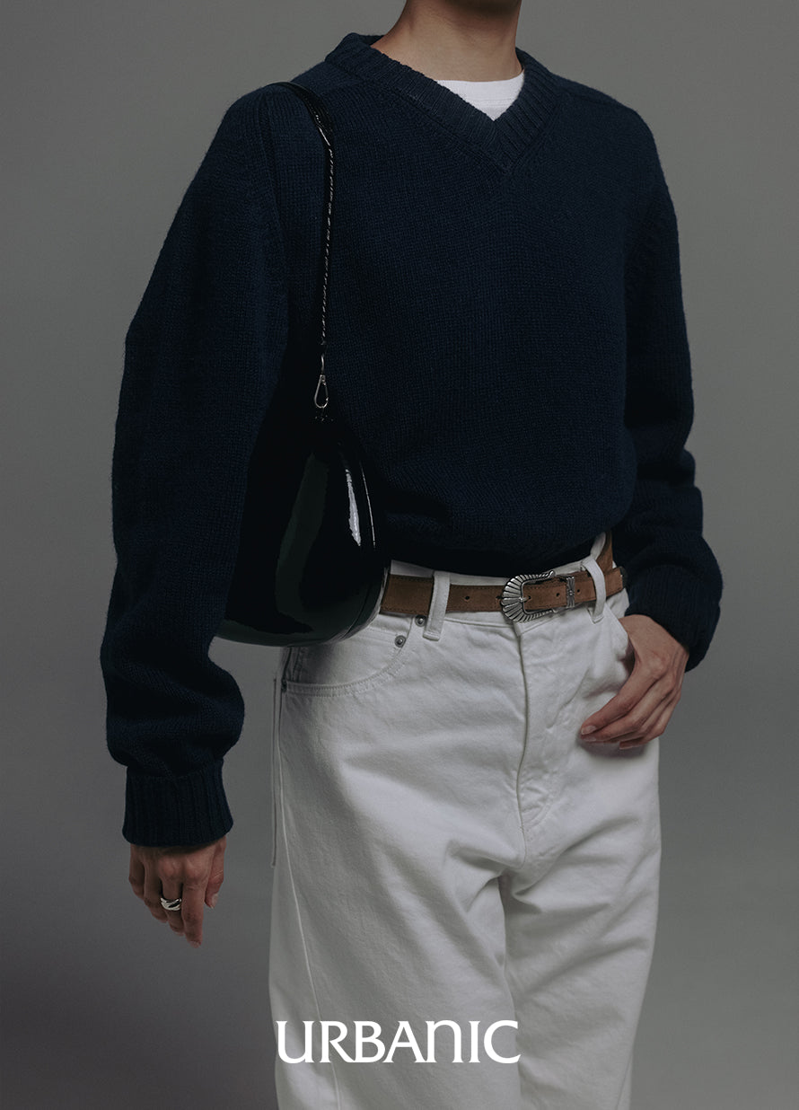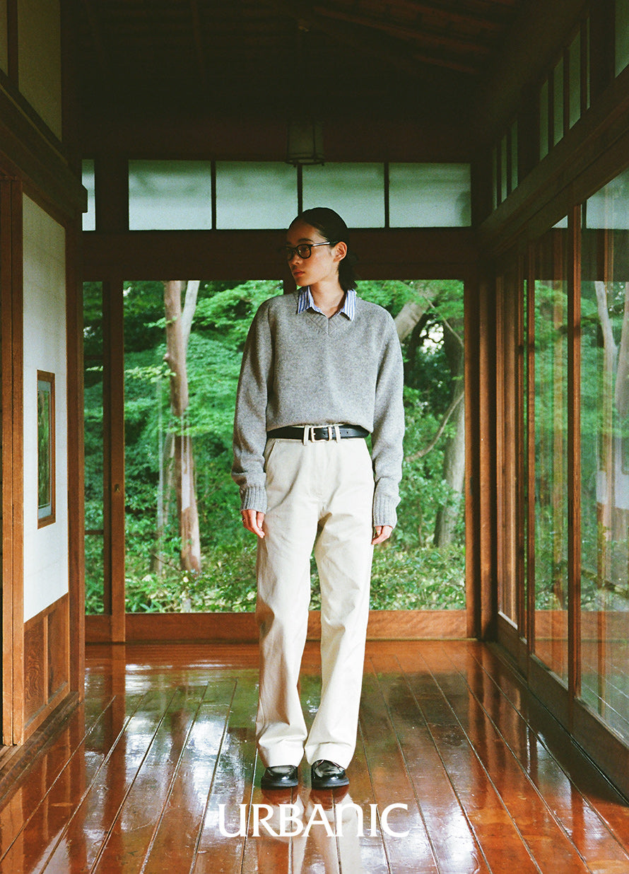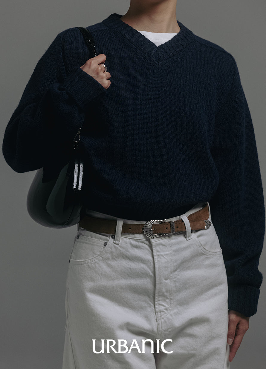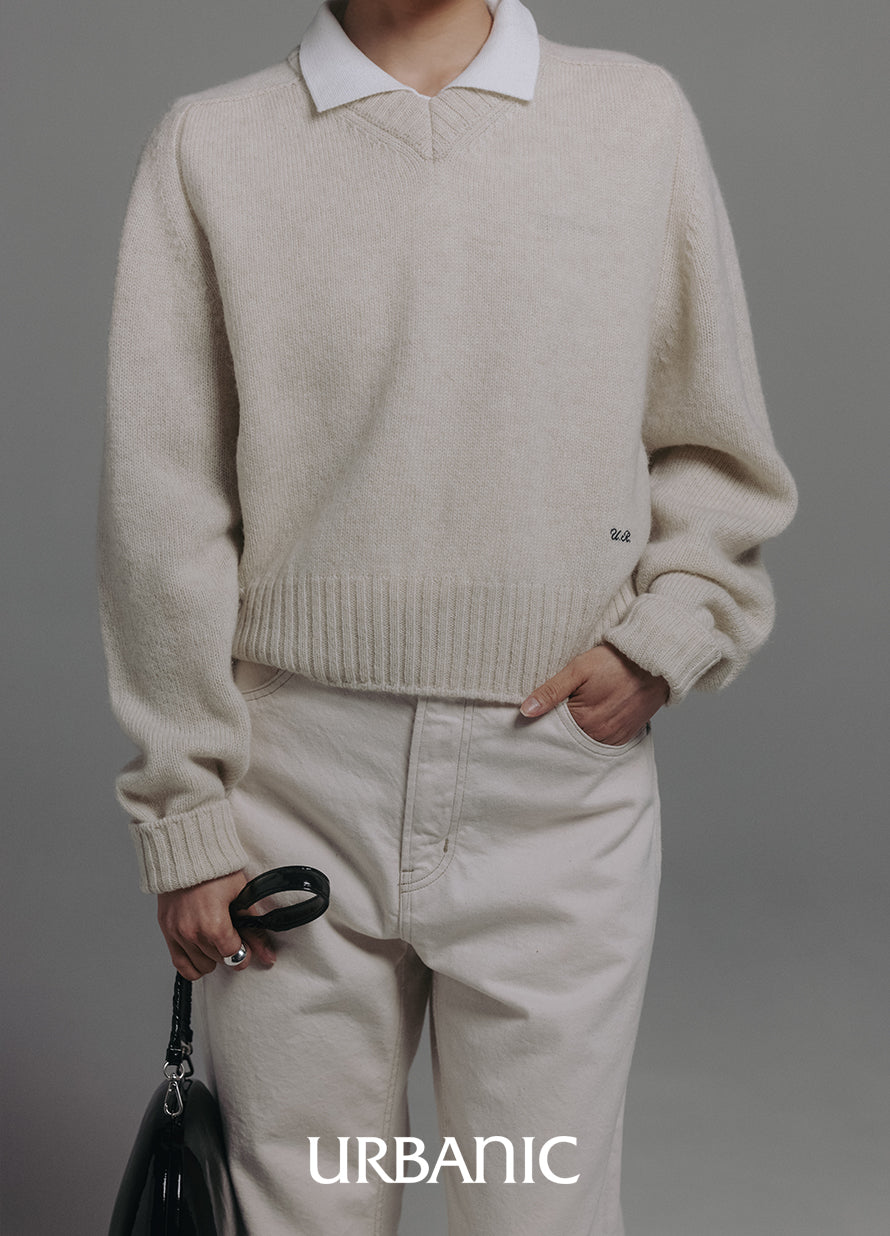 This lightweight and insulating V-neck knit is made using the whole-garment technique. It features a neckline that comfortably wraps around the neck with moderate depth and a length that slightly covers the waist, making it versatile for various uses.