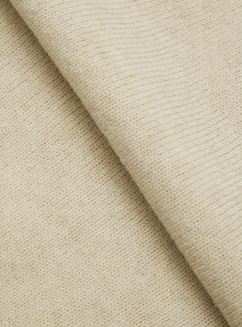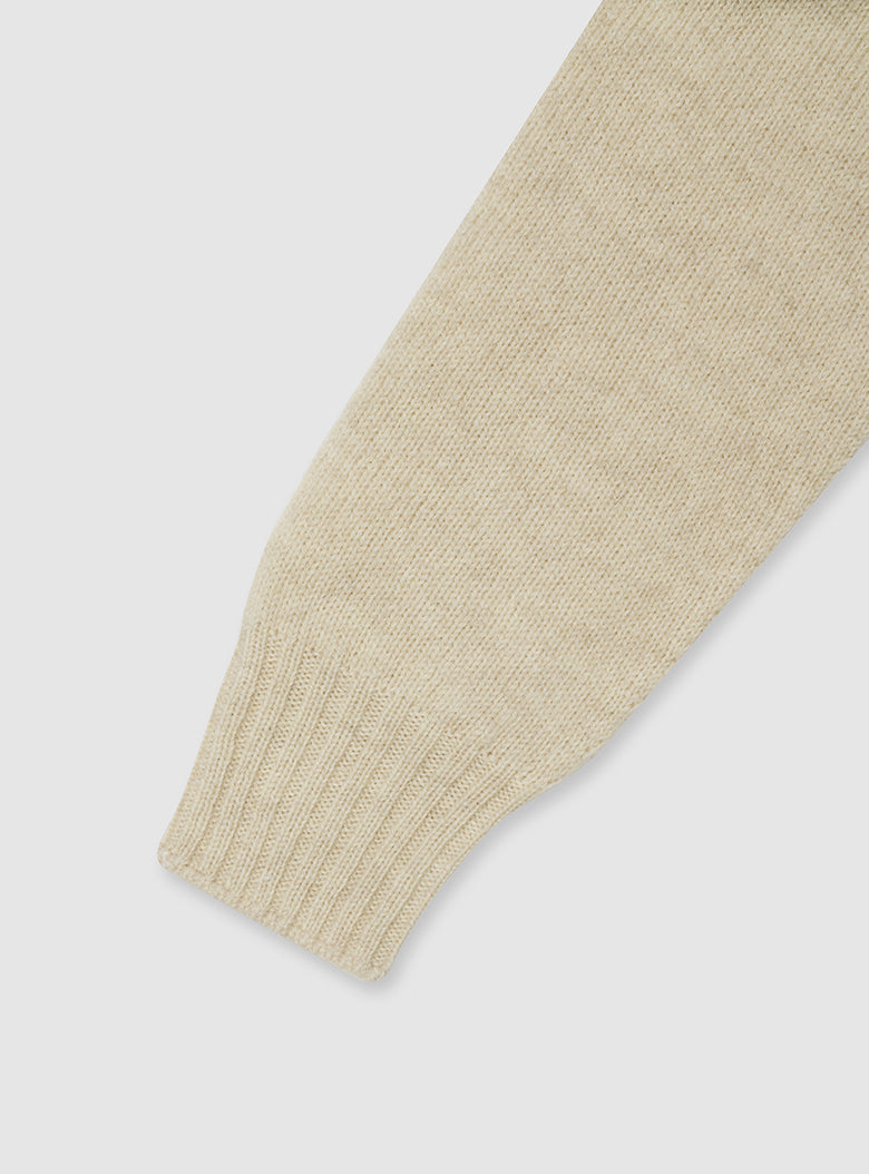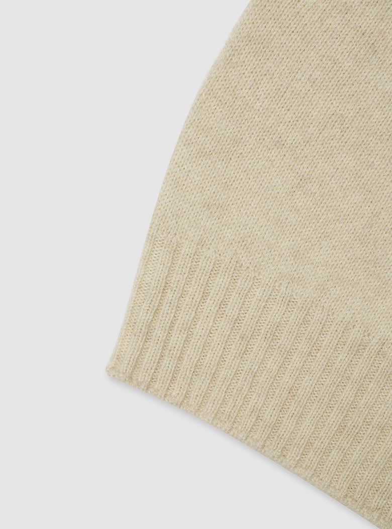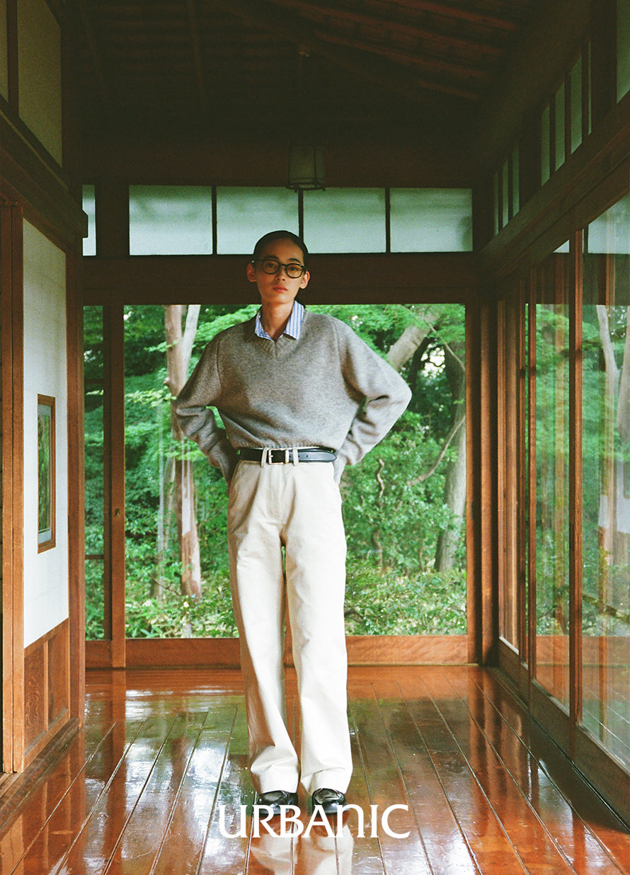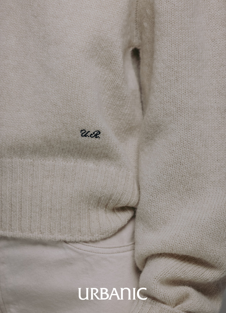 This lightweight and insulating V-neck knit is made using the whole-garment technique. It features a neckline that comfortably wraps around the neck with moderate depth and a length that slightly covers the waist, making it versatile for various uses.
