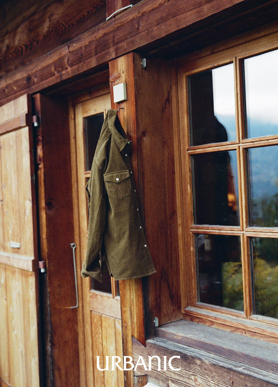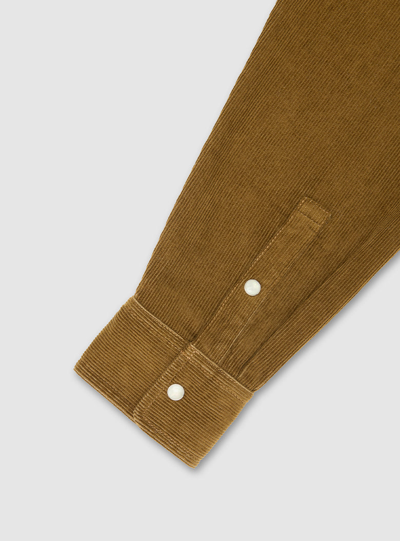 The Saddle Western Shirt reinterprets the shirts worn by cowboys of the American West with a softer, warmer mood. Cut in a classic western silhouette, the shirt is made from a thick, supple corduroy in a calm, deep brown tone that recalls the feel of fine suede.