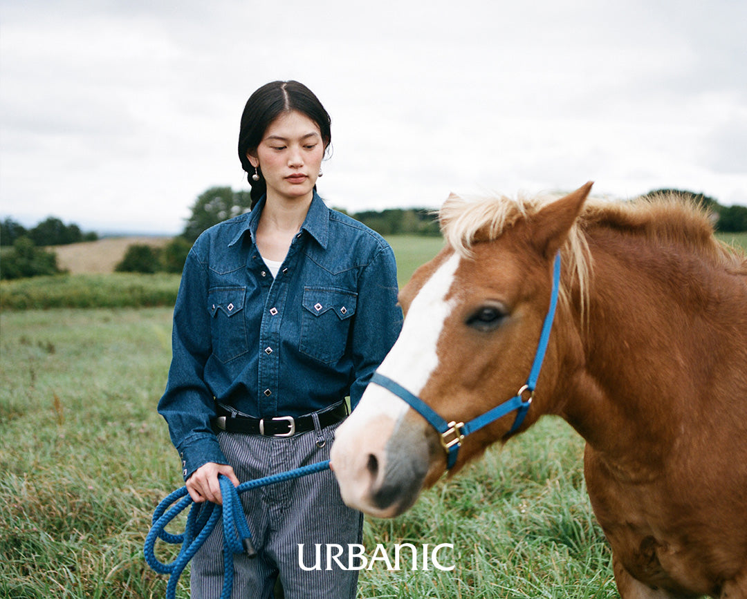 The Sawtooth Western Shirt is a classic cowboy shirt reimagined with captivating details. Made in deep indigo denim, it features refined khaki stitching and silver snap buttons set with black resin in a pyramid shape, creating a distinctive harmony in this Western shirt.