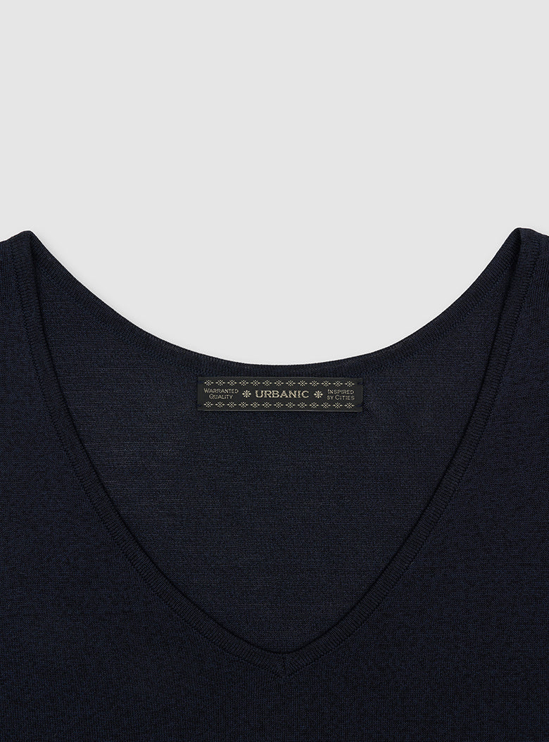 Designed with a softly rounded V-neckline that elegantly frames the neck, it also features closely-fitted armholes that provide a secure, comfortable fit without feeling too revealing.