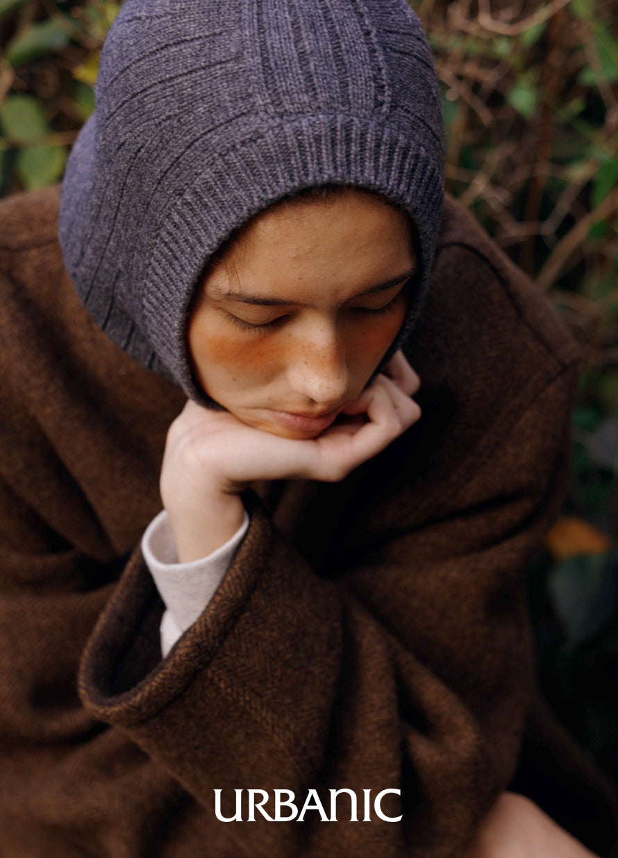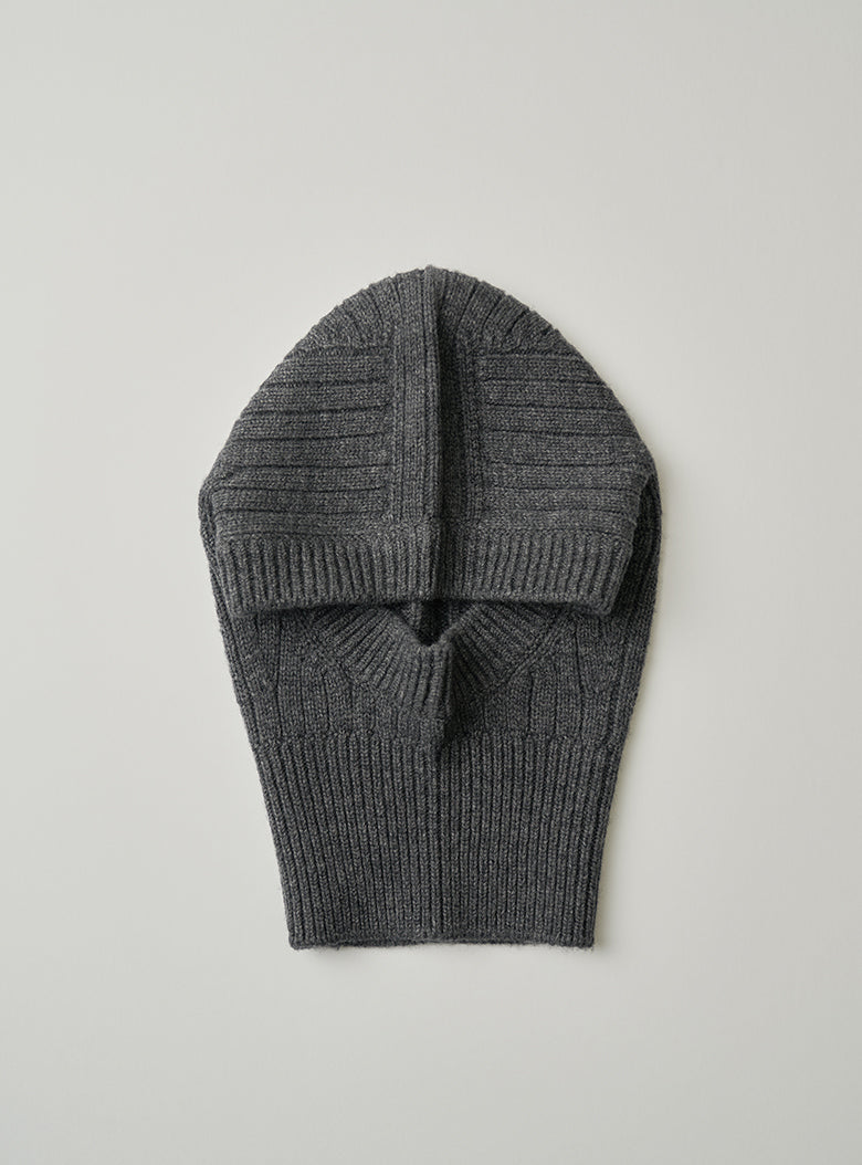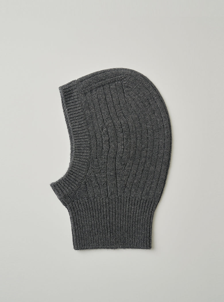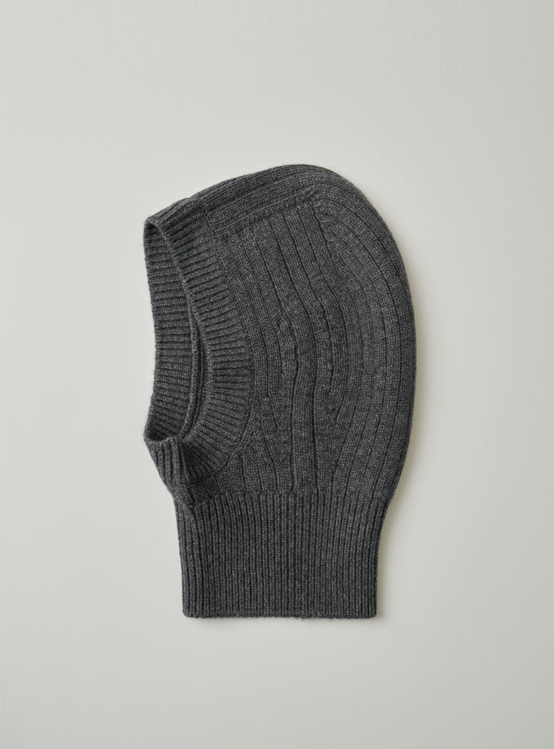 The "Tender Balaclava" offers warmth and comfort, even in harsh, chilly winds. Made from a durable yet soft wool and cashmere blend, it showcases a wide-ribbed knit for added texture and insulation. Its carefully designed silhouette fits snugly and gracefully around the head for both style and functionality.