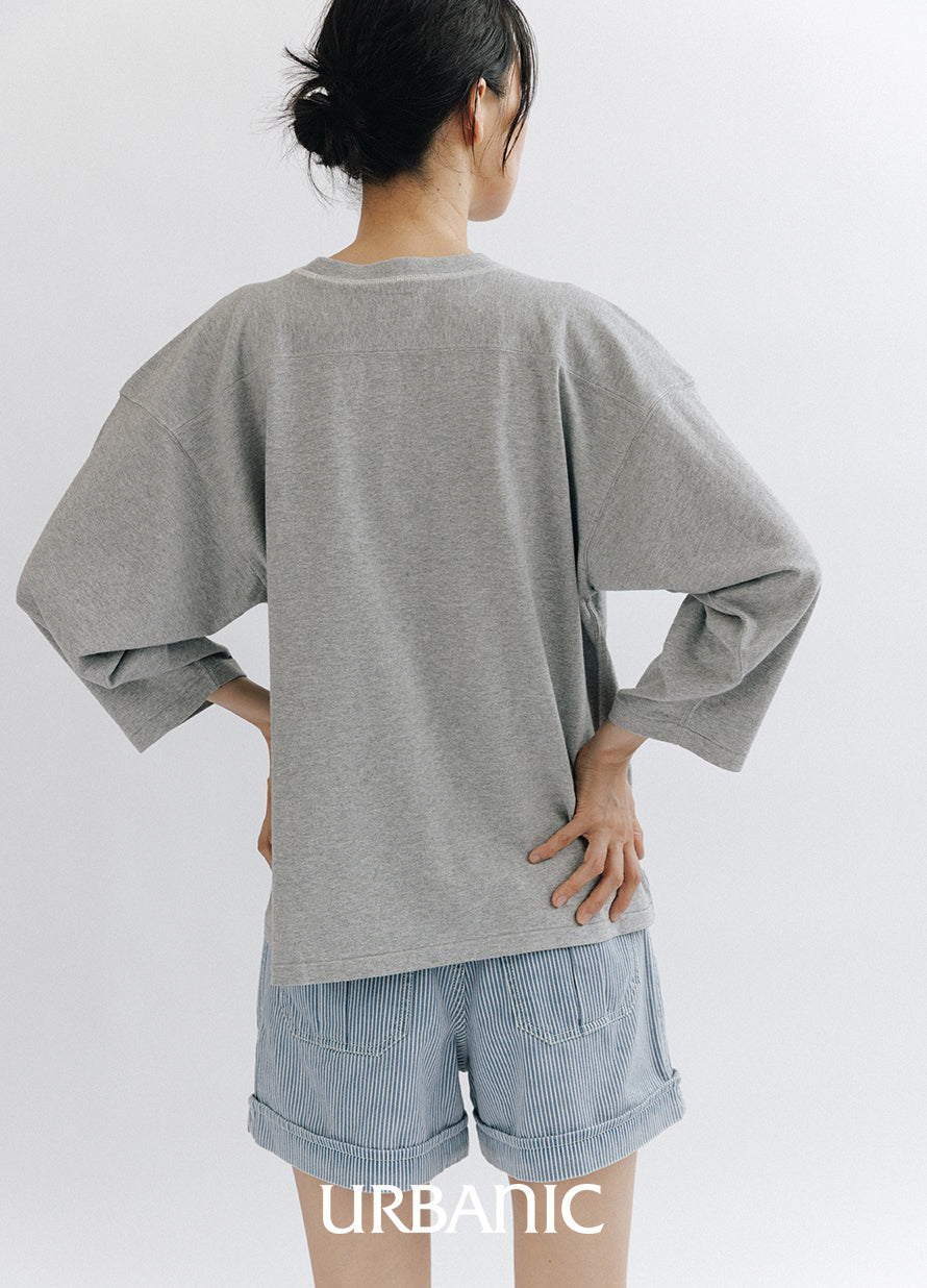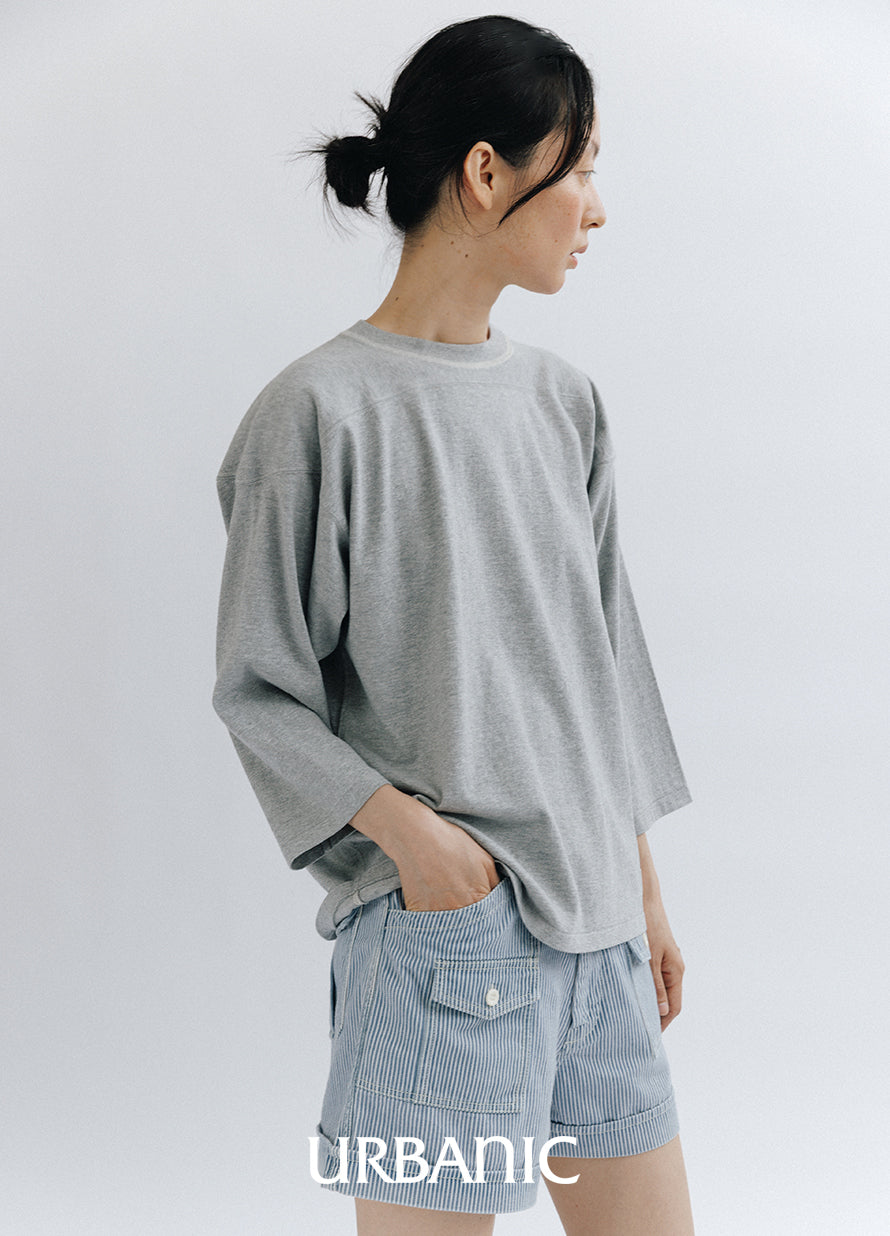 Inspired by vintage athletic wear, the Tompkins Football Tee is a nostalgic nod to the classic football silhouette—reimagined exclusively for URBANIC in collaboration with Healthknit. Featuring a roomy fit, 3/4-length sleeves, and wide shoulder patches that echo retro sportswear, this tee brings a bold yet laid-back spirit to everyday styling. A standout piece with timeless character.