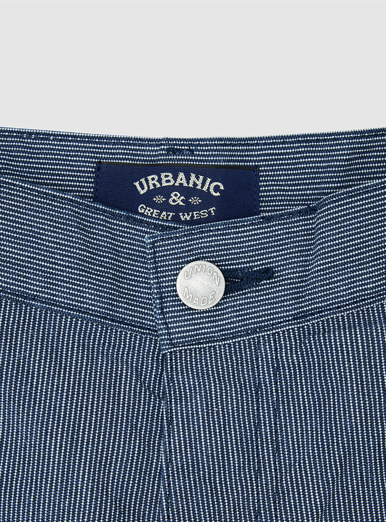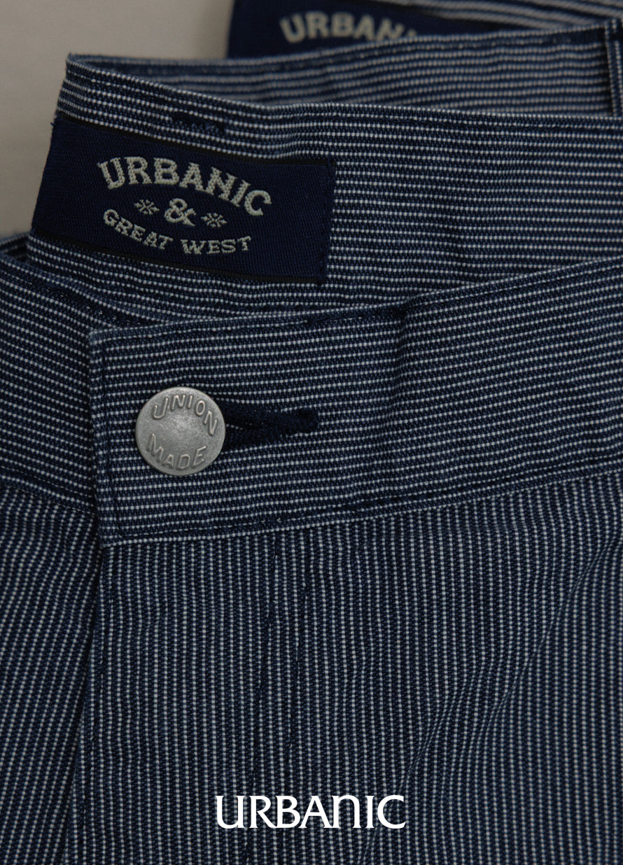 The Union Pants (Seibishi) are a modern reinterpretation inspired by the practical uniforms of mechanics, designed for ease of movement.