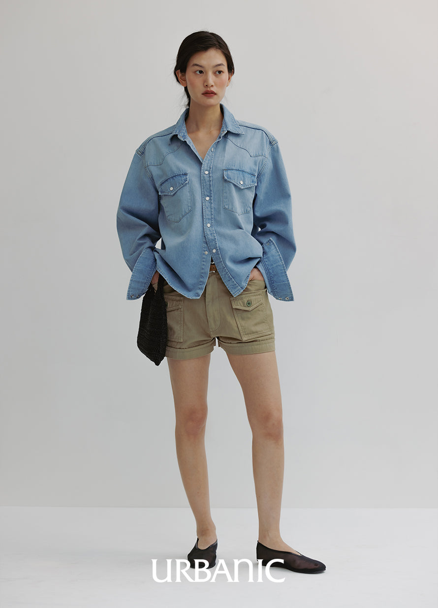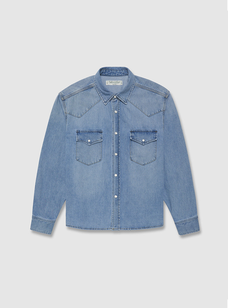 The Western Denim Shirt is a modern reinterpretation of the classic cowboy shirt, designed for effortless style.
